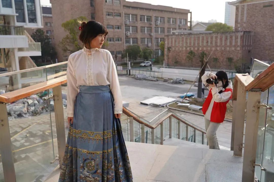 本次摄影服务活动有30余位女老师、公寓管理员、女同学报名,摄影摄像和影视编导专业的志愿者们提供证件照、漫游校园、新中式马面裙三种形式的一对一拍摄,华丽精致的新中式马面裙服装由时尚与传播教研室赞助,活动受到师生们的欢迎。