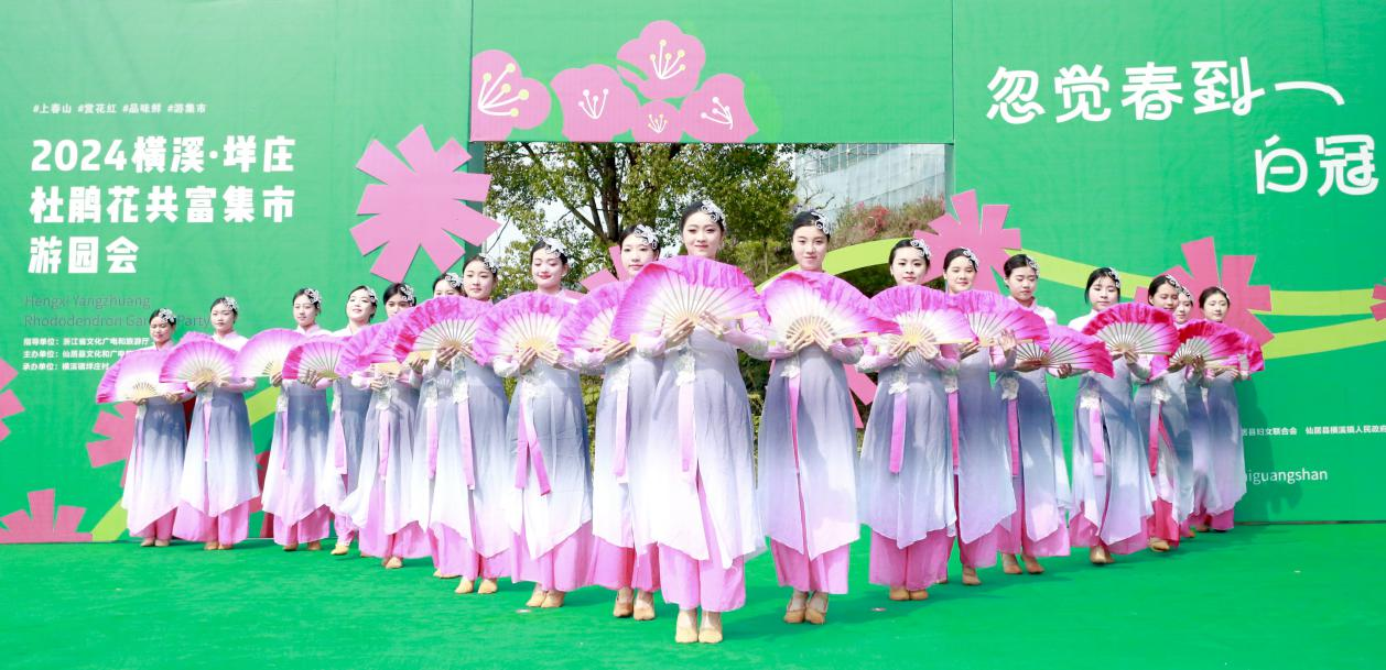 4月3日,“忽觉春到白冠山”2024横溪垟庄杜鹃花共富集市游园会开幕式在仙居横溪镇垟庄村白冠山脚举行。校党委书记薛亮,党委委员、组织部部长、人才办主任周应中出席开幕式。演艺与教育学院2022级表演艺术班25名师生应邀参加开幕式演出,同学们表演的群舞《茉莉花》《风月》《等你来》赢得了现场观众的阵阵喝彩,为开幕式增添了靓丽的青春底色。