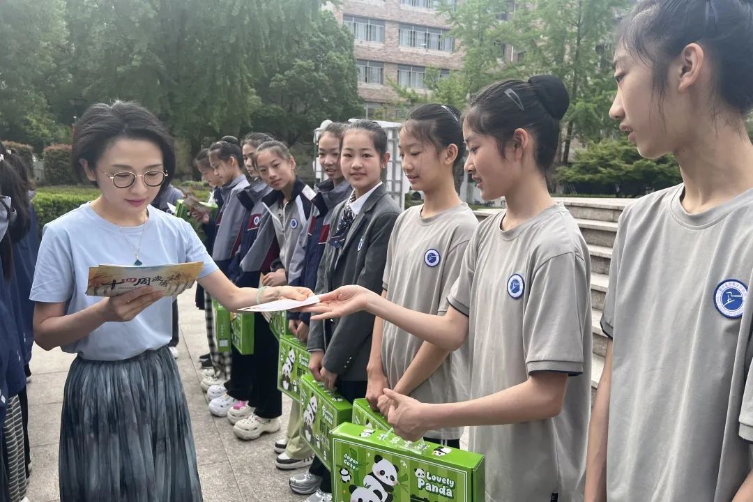 郑吟、包峥剡、孙天添为同学们颁发祝福礼包,小小的祝福礼包不仅包含了学校对同学们的祝福和鼓励,更承载了学校对同学们未来成长的期待和关注。