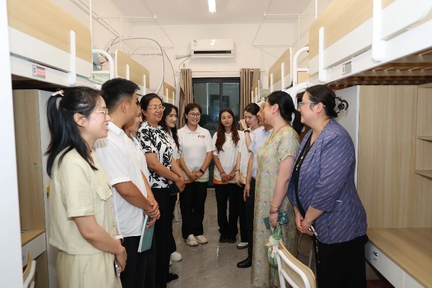 9月9日傍晚,校领导深入宿舍走访慰问,细心询问了同学们的生活起居情况,耐心解答了大家提出的疑问,并送上了亲切的问候和祝福,宿舍里洋溢着温馨与和谐的氛围。