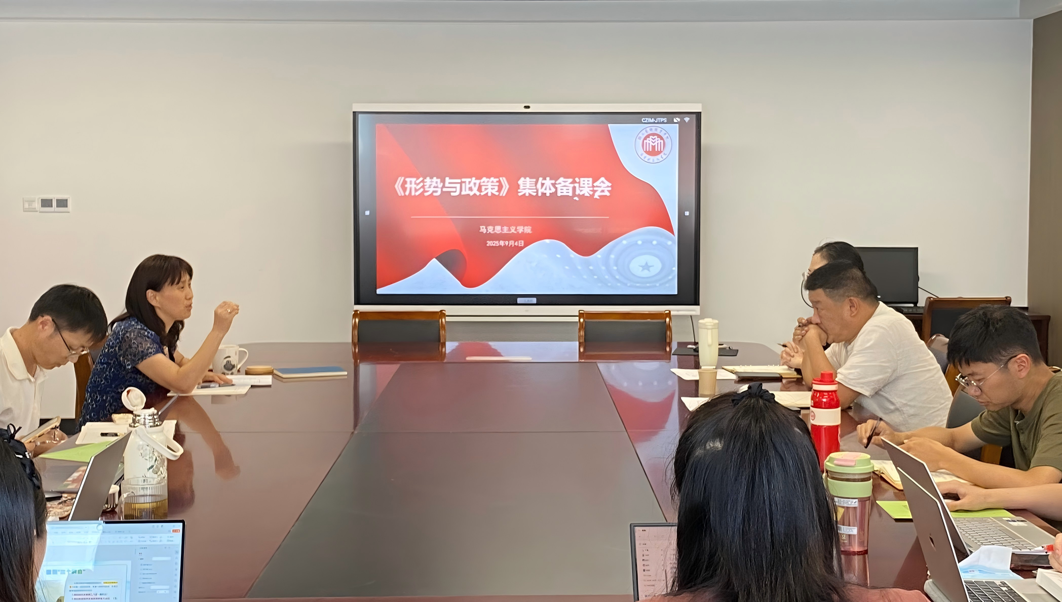 9月4日,马克思主义学院召开2025年秋季学期《形势与政策》集体备课会。校党委委员、宣传部部长、统战部部长傅文钢到会指导,马院全体任课教师参加。