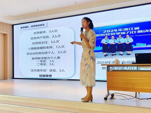 学前教育教研室主任卢茜向新生们介绍了教研室授课教师团队,并梳理了未来三年的课程设置、实习安排、校内外专业活动以及各类重要赛事。她结合行业发展趋势,讲解了专业升学与就业前景,同时分享了优秀毕业生的成长经历与发展现状,激励新生们树立专业信心,明确学习方向。