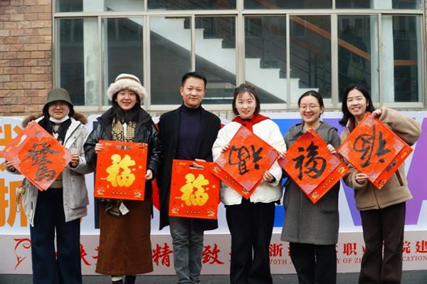活动现场墨香四溢、暖意融融,充分展现了传统书画艺术的独特魅力。活动设置多重互动环节,既有专业书法教师挥毫示范,也为其他爱好书法的师生提供了亲身体验的机会:可提笔书写寓意吉祥的“福”字,将浓浓的新春祝福凝于笔端;可创作对仗工整的新春对联,让美好期许跃然红纸之上;还能在精巧书签上留下专属墨宝,亲手打造独一无二的新年纪念。此外,活动特别设置抽奖环节,进一步点燃了师生的参与热情,现场欢声笑语不断。