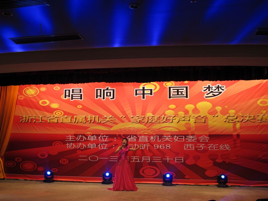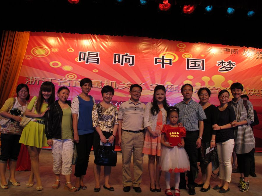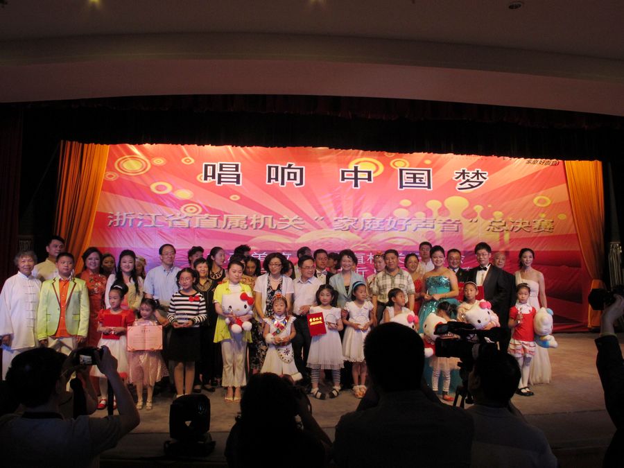 为深入贯彻落实党的十八大、全国“两会”和浙江省第十三次党代会精神,凝聚广大干部职工实现“中国梦”的智慧和力量,营造和谐的家庭氛围,浙江省直机关妇委会5月中下旬举办省直机关“家庭好声音”大赛。参赛对象为省直机关、省部属企事业单位在职干部职工家庭。自5月15日在浙江省教育厅大厦多功能厅启动首场初赛开始,经过初赛、复赛多轮角逐,最终于5月30日晚浙江省联谊俱乐部举行总决赛来自全省各系统的15支代表队参加决赛我院音乐系声乐副教授杨韵携女儿代表省文化厅参加决赛。当晚,院党委员、纪委书记夏开堂院工会委员及女职委委员来到了现场,为杨韵老师加油助威。