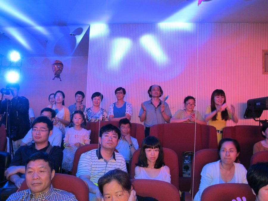 比赛现场洋溢着热烈气氛,座无虚席,各参赛队后援团、啦啦队都举着醒目的标识牌,为各自亲友、同事呐喊助威。率先上场的是省火电建设公司彭长源一家三口带来的《再唱山歌给党听》,父女二人深情并茂的演唱搭配母亲优美的舞姿,一经出场便获得了满堂喝彩。我院杨韵母女作为省文化厅代表队,第三个登台表演。身着一袭红色礼服的杨,以一曲带有浓郁花腔女高音特色的优美华尔兹歌曲《春天的芭蕾》,将大赛引入了高端专业水准。杨女儿庞佳弈小朋友也不负众望,与妈妈一起对唱了《祖国最亲,妈妈最爱》,音准、节奏、音质都可圈可点,一招一式都颇具未来小歌手的风范。舞台上是杨的精彩演唱,台下浙艺院教师啦啦队热情欢呼。
