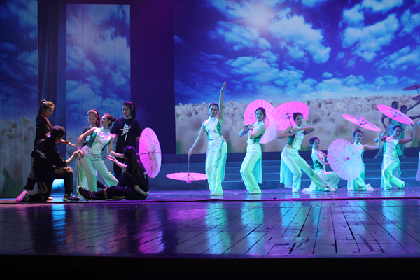 接着,盛大的文艺演出倾情上演。由浙江商业职业技术学院的同学们带来的《LALALA》正式拉开演出帷幕,他们身穿一身的运动装,在舞台上谱写着青春舞曲;浙江体育职业技术学院带来的武术表演《行云流水》,动作整齐,苍劲有力,一招一式体现的是中华传统文化的动之美;浙江医学高等专科学校的《因为是医生》,“白衣天使”教会了大家在遇到突发事故时如何采取正确的急救措施,阐述了他们所担负的使命;浙江科技职业学院表演了极具未来感和科技感的《炫酷电光舞》,科技与艺术相结合,给观众以焕然一新的视觉冲击;浙江旅游职业学院的《再见茉莉花》,将传统的茉莉花与现代的街舞相结合,油纸伞、旗袍、RAP、街舞,古典与街头的融合迸发出一种独特的美;浙江警察学院的同学们将平日的训练生活搬上舞台,并与之将青春和梦想相融合,矫健的步伐,铿锵的口号,向大家展示了印象深刻的《快乐警营》;浙江省教育发展中心滨江后勤集团的员工们以自己独特的表达方式展现了各自对艺术的追求和支持,他们是滨江高教园区坚实的后备力量;由东道主浙江艺术职业学院带来的群舞《鱼儿》和独唱《美丽家园》作为压轴节目登场,惟妙惟肖的舞姿,甜美的歌声,专业的水准,将晚会气氛推向高潮。