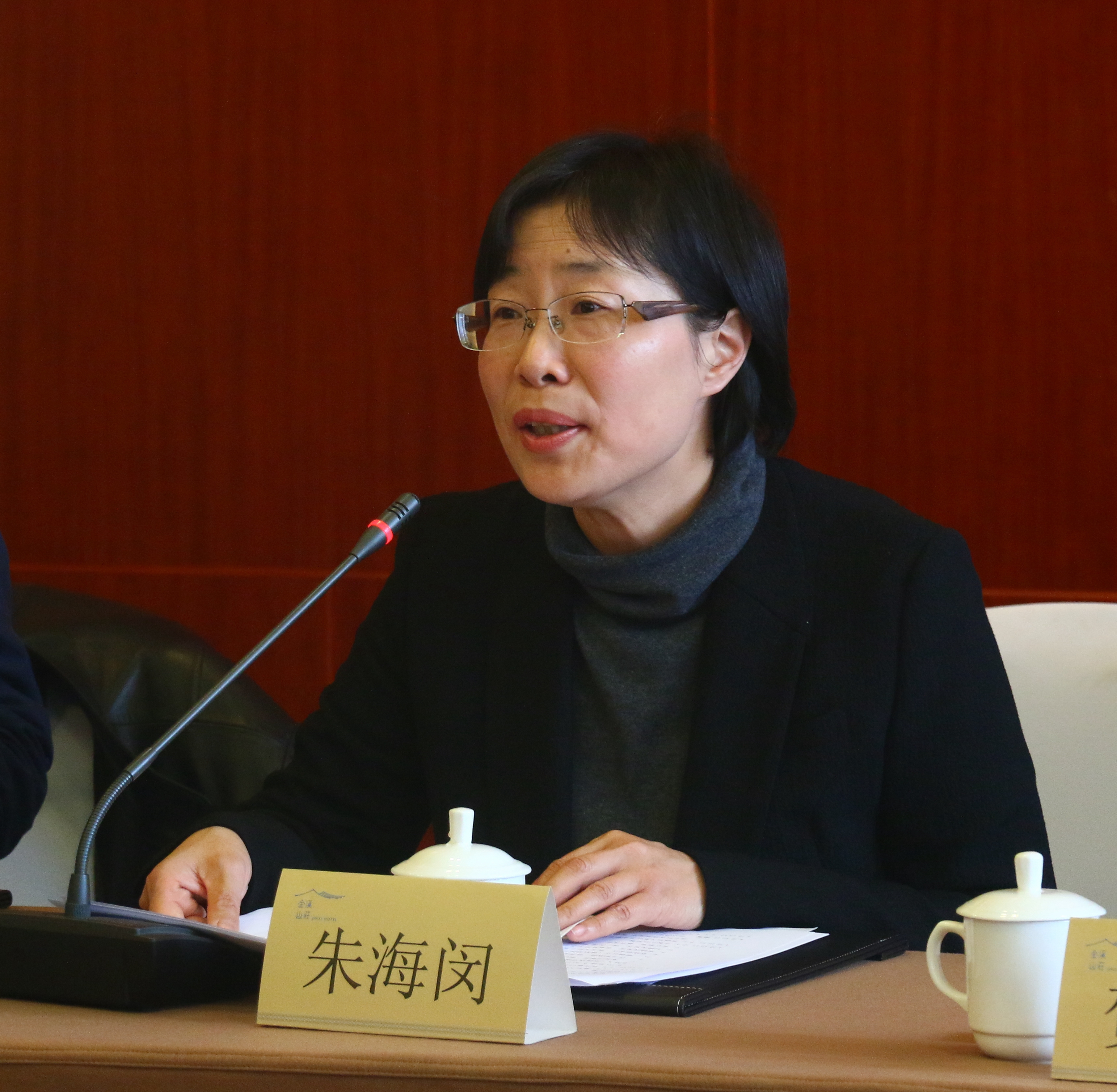 朱海闵在研讨会上致词。她说,《走过硝烟》是一部有英雄气质的电视剧。战火连天戎马倥偬的时代尽管已远去,但我们将它拉回视野,重捡起那些历史细节,革命前辈坚定崇高理想信念,为了国家和人民,用英勇斗争的革命精神和刚烈无畏的行动争取胜利,依然震撼着我们。今年是中国人民解放军建军90周年,我们创作这部电视剧,对回望历史不忘初心有着时代价值和意义。习近平总书记在中国文联十大、中国作协九大开幕上强调,歌唱祖国、礼赞英雄从来都是文艺创作的永恒主题,也是最动人的篇章。我院影视创作水平不断提高,原创电影在国内外影展中屡屡获奖,为更好地与产业接轨,也为我院相关专业师生搭建一个实践的平台,本次创作通过多元方式,联合社会优势创作力量,希望打造出一部有担当有社会责任感的影视精品。