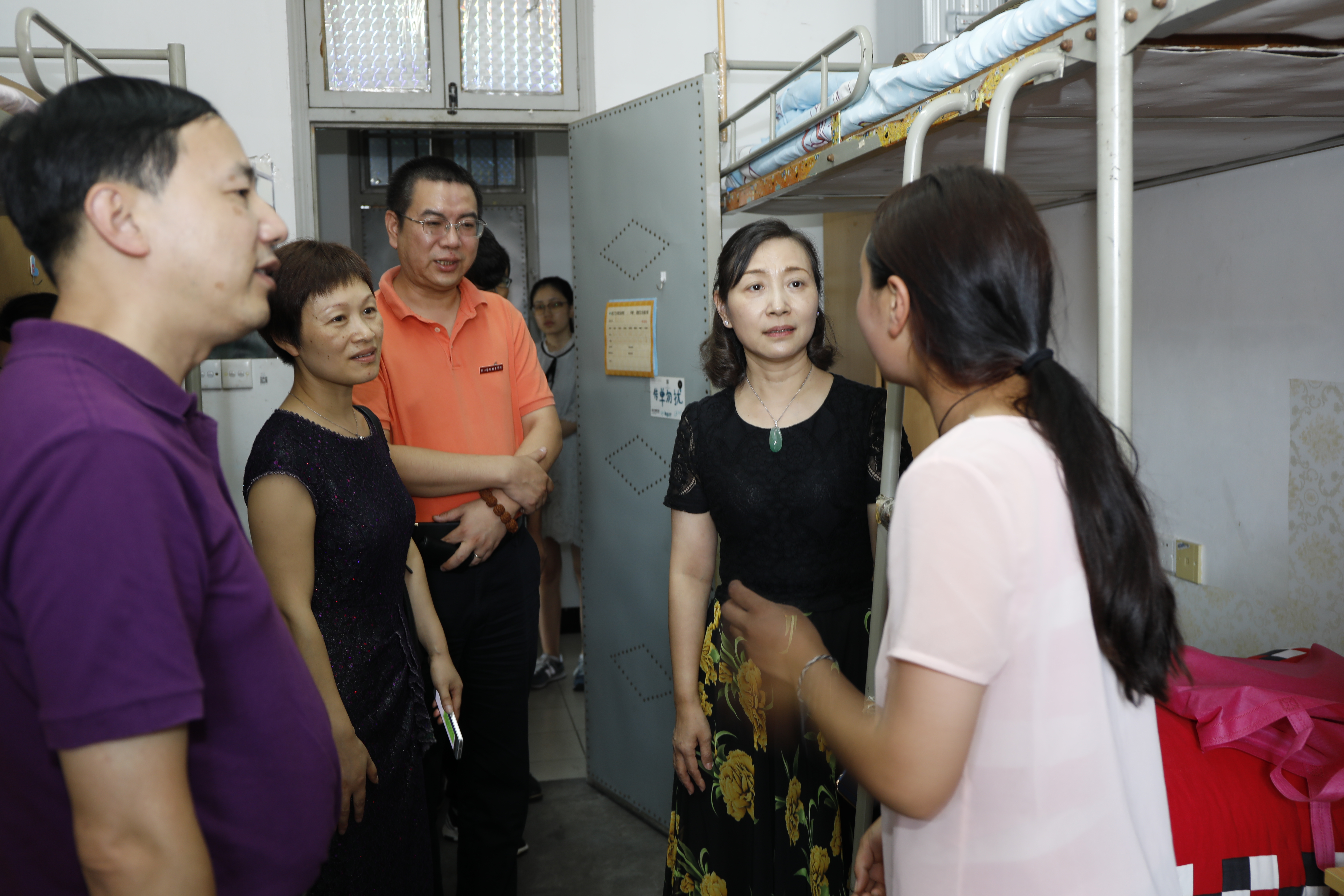 院领导在看望2017级新同学的路上,同身边经过的新生和家长们进行了亲切的交谈,真诚地询问他们初次来到浙艺的感受。新生及家长们都表示对迎新接待工作非常满意,十分感谢学院领导对新生的关心和期望。