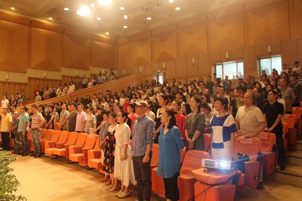 在庄严的国歌声中,全体起立,奏唱国歌。全体与会者首先观看了《做学生成长的引路人——浙江优秀教师礼赞》专题片,感受全省各地优秀教师代表的感人事迹,接受心灵洗礼,深受感动鼓舞。