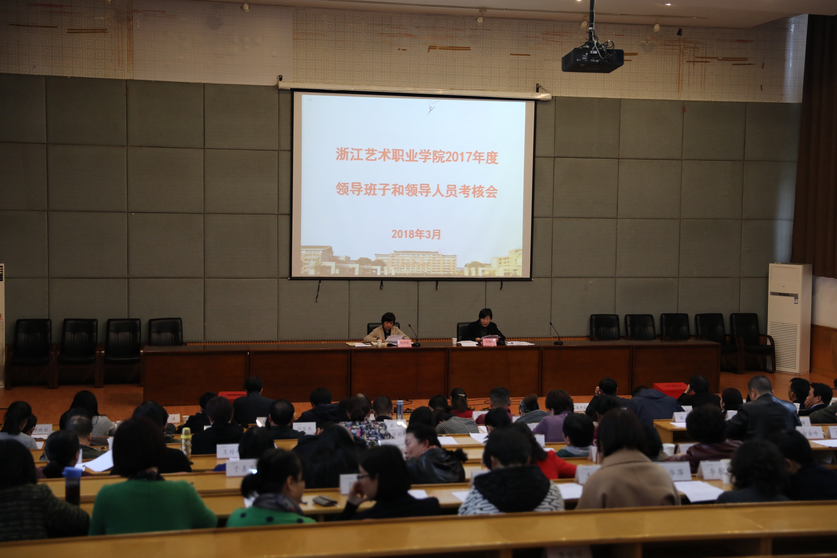 按照省委组织部、省委教育工委、省文化厅工作安排,3月14日下午,学校在图书信息中心报告厅召开2017年度领导班子和领导人员考核会。省文化厅人事处调研员倪赛英到会指导。校党委班子成员、中层处级干部、副高以上职称人员、民主党派负责人、教代会职代会执委会成员、近三年退休的校领导等参加会议。会议由校党委书记朱海闵主持。