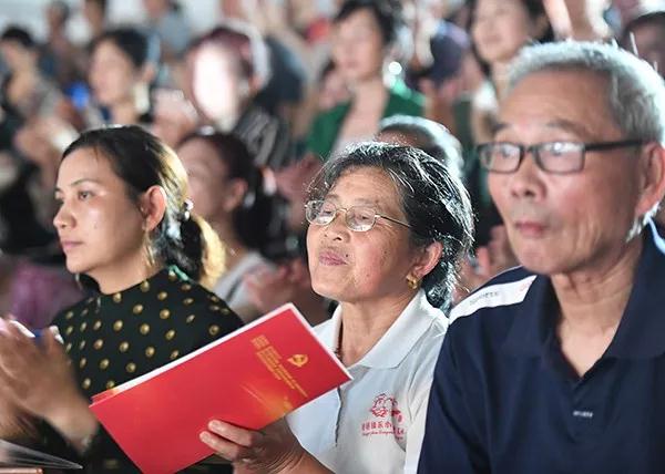 小组唱《红船向未来》将观众的思绪一下拉回到1921年,“一艘红船哎,南湖浪里来。经风雨历险滩,奋勇向前开。虽说是航道上常有迷雾阴霾,却总能看得清金色未来……”独唱《绒花》用柔美的韵律唱出了革命烈士的芳华。《珊瑚颂》以物喻人的手法,借赞美红珊瑚来赞美普通百姓渔家,已成为红色经典之典范。《采茶舞曲》采用浙江民间音调的特点,旋律优美流畅,脍炙人口。二胡独奏《空山鸟语》、中国文化的代表元素之一的中国民歌《茉莉花》、手风琴独奏等把村民深深吸引住了,喝彩声在礼堂内经久不息。《卜算子·咏梅》中顽强不屈的精神和恢弘的气势被演唱者表达得淋漓尽致。富有新时代气息的《美丽浙江》、激情澎湃的《沁园春·雪》和《我爱你,中国》感动着在场的每一位观众。近一个半小时的节目在不知不觉中结束,村民们意犹未尽,“今天的演出太好看了!”不少村民纷纷表示,还不时竖起大拇指,点头称赞。