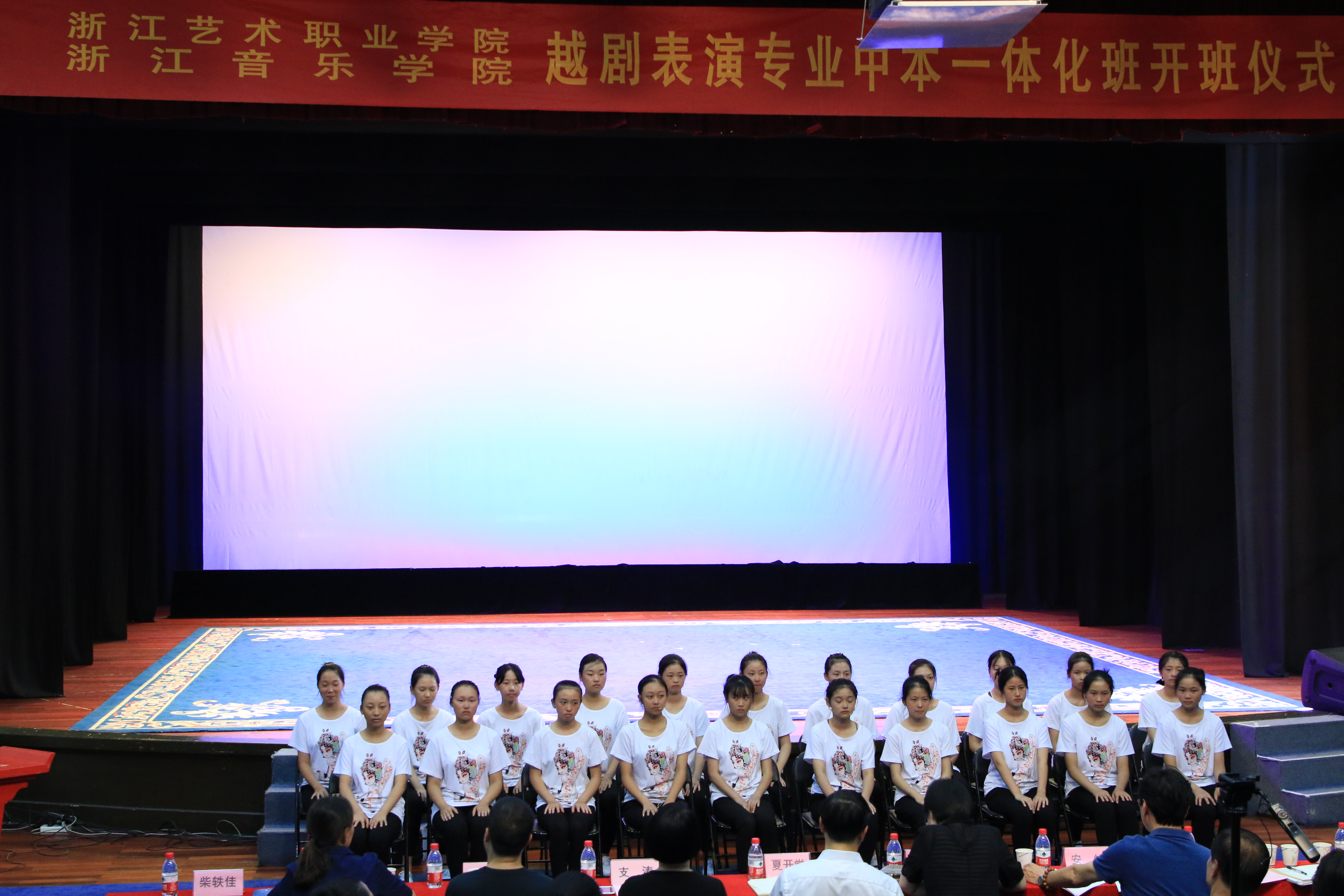 浙江艺术职业学院党委书记朱海闵,党委副书记夏开堂,浙江音乐学院戏剧系主任安怡,浙艺戏剧系主任支涛等参加开班仪式。张志红、周伟君、李公律、王一敏、朱幼琪、苏苏、缪海洁等专业老师一一与新生见面。