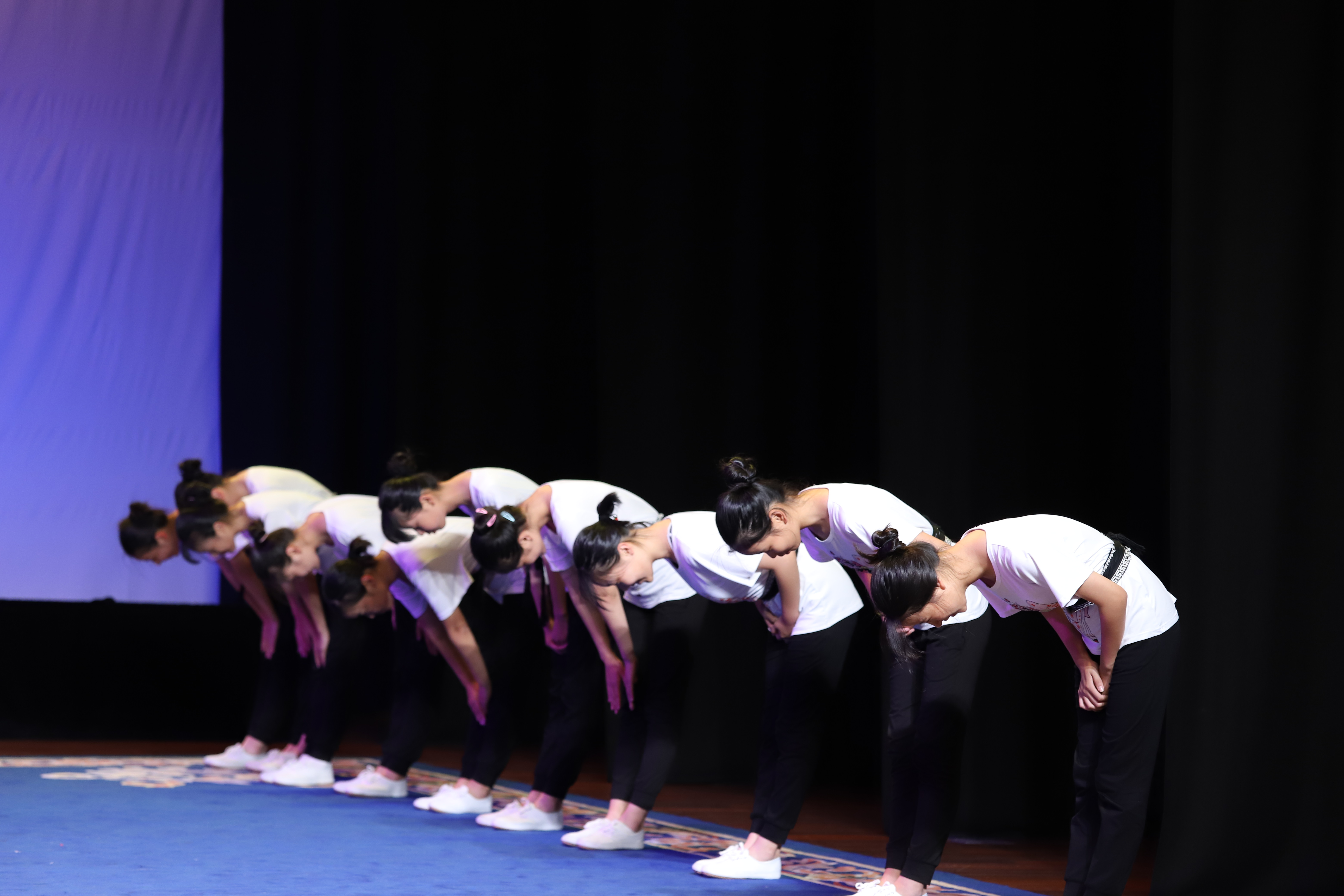 在古代,“入学礼”被视为人生四大礼之一。正衣冠、行拜师礼、净手净心,开启求学之旅。9月17日,浙艺戏剧系小剧场也举行了一场隆重的“入学礼”,2018级越剧中本一体化班21位姑娘,身着练功服,端端正正立在舞台两侧,浙江音乐学院、浙江艺术职业学院两校教师,上台为她们一一系上青色练功带,正正衣襟,拍拍肩膀,鼓励她们未来挑起越剧传承的重任。姑娘们向老师深深鞠躬,大声问候“老师好”,这一刻,意味着她们专业道路的开启。未来7年,她们将在浙音、浙艺共同培养下与“越”同行。