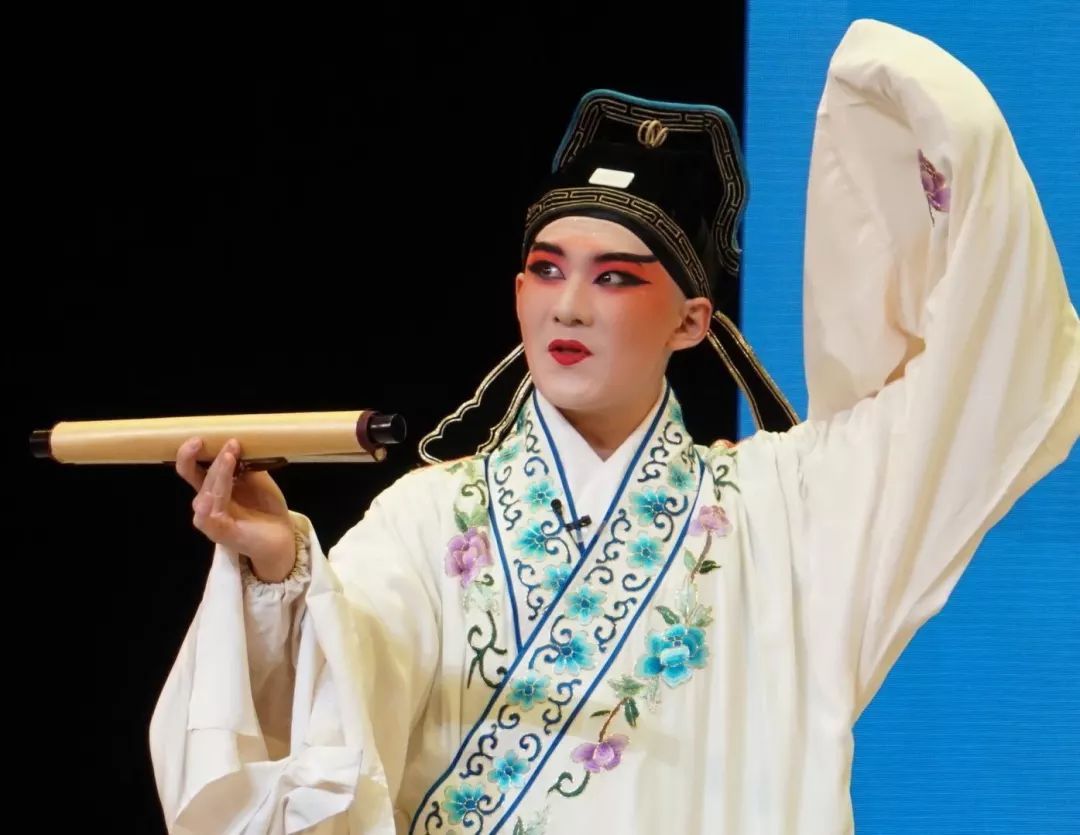 《牡丹亭·拾画》是巾生的基础戏,传艺名师是著名昆剧表演艺术家、梅花奖获得者、有“巾生魁首”美誉的汪世瑜。汇报演员是13级小昆班学生席秉琪,他扮相俊美,嗓音透亮,展现一个大病初愈,却充满书卷气的英俊少年。其细腻的身段动作,能看到汪老师的影子。