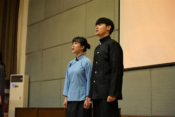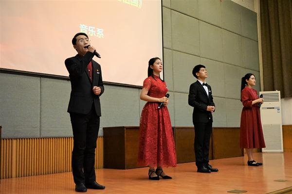 在《光荣啊,中国共青团》嘹亮的歌声中,“我和我的祖国”红色经典诵读活动决赛拉开帷幕。通过前期预选,戏剧系《秋瑾》、音乐系《祖国啊,我亲爱的祖国》、舞蹈系《红船,从南湖启航》、美术系《我是一条古老的河流》、影视技术系《闪耀吧!青春的火光》《父母之河》、文化管理系《美丽中国》《我骄傲,我是中国人》等8组作品进入决赛。同学们用饱含深情、青春激昂的吟唱讴歌党和祖国,礼赞人民英雄。这些作品都是各系师生集体完成,通过团体协作、师生互动,创造精彩、分享美好,现场一次次响起热烈掌声。
