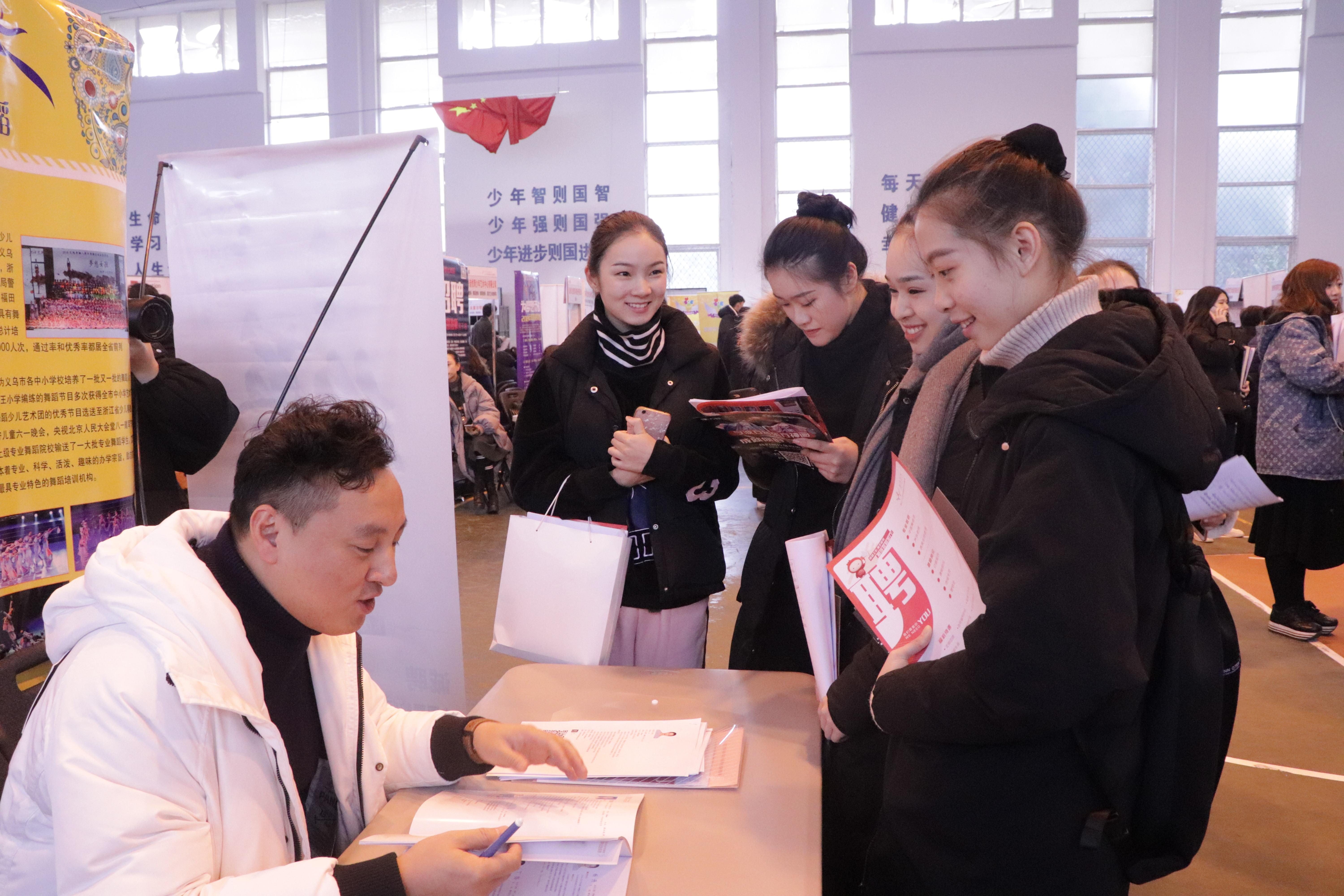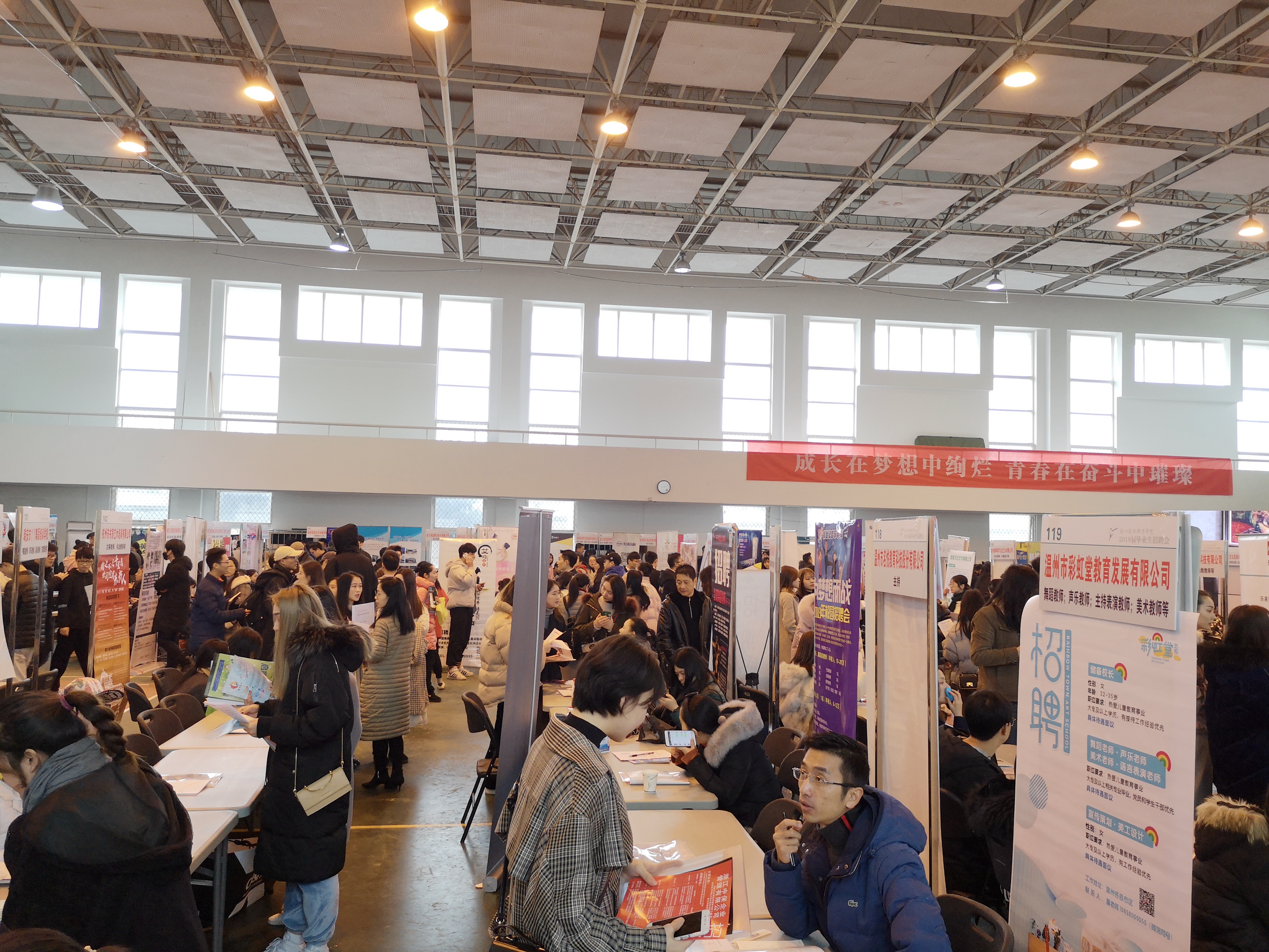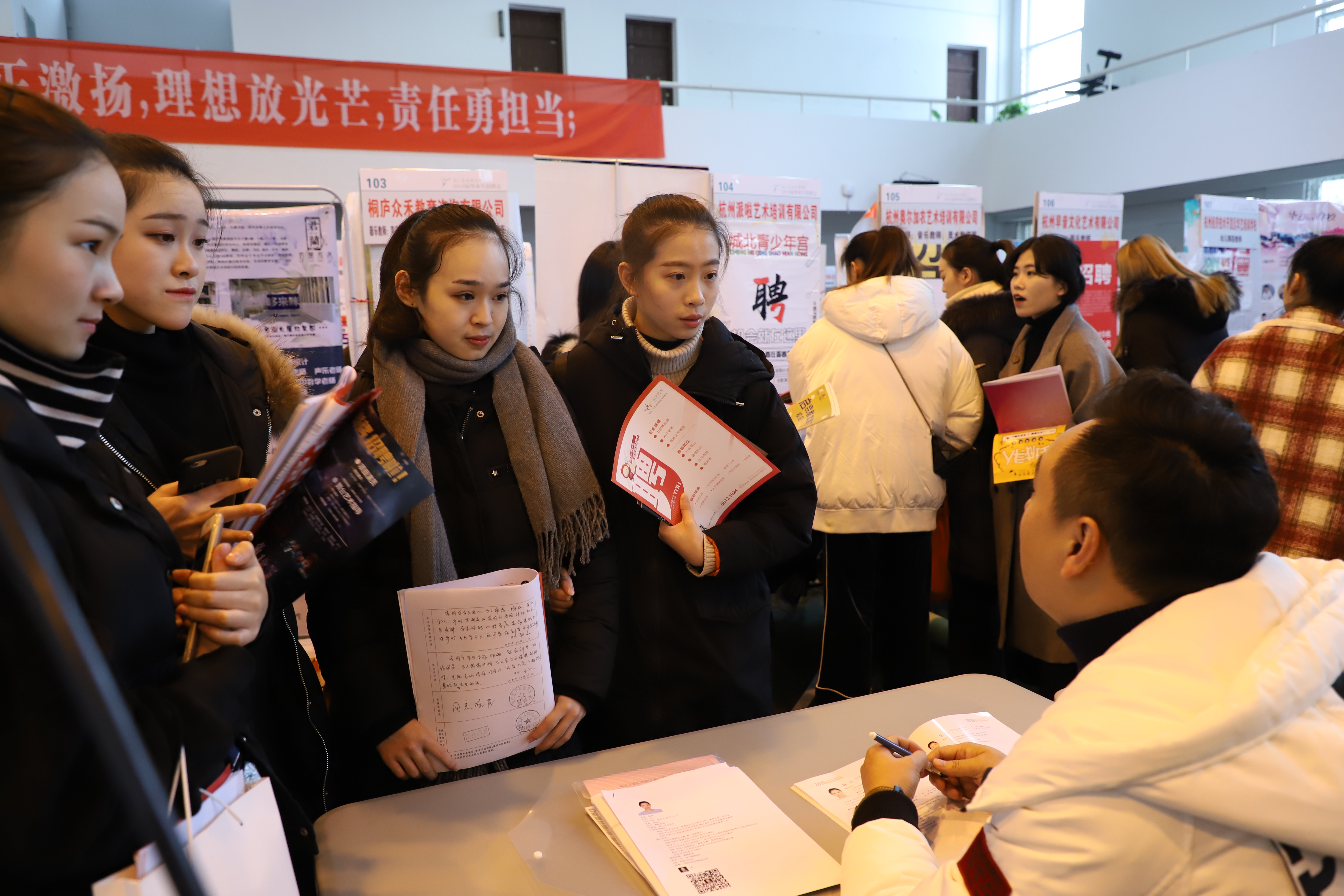 今年有将近500家用人单位报名参加招聘,既有国有企事业单位,也有时下市场需求旺盛的民营教育培训机构等来广纳英才。因场地原因,最终选取了200家招聘岗位综合度高、与专业匹配度高的单位现场招聘,其中有12家是校友代表所在单位回母校来招聘。浙江小百花越剧团、杭州大剧院、杭州歌剧舞剧院、杭州青少年活动中心、万事利集团、宋城集团等多家优秀企事业单位前来,堪称全省规模最大的艺术类毕业生专场招聘会。各教学单位也将会陆续举办点对点的小型招聘会。