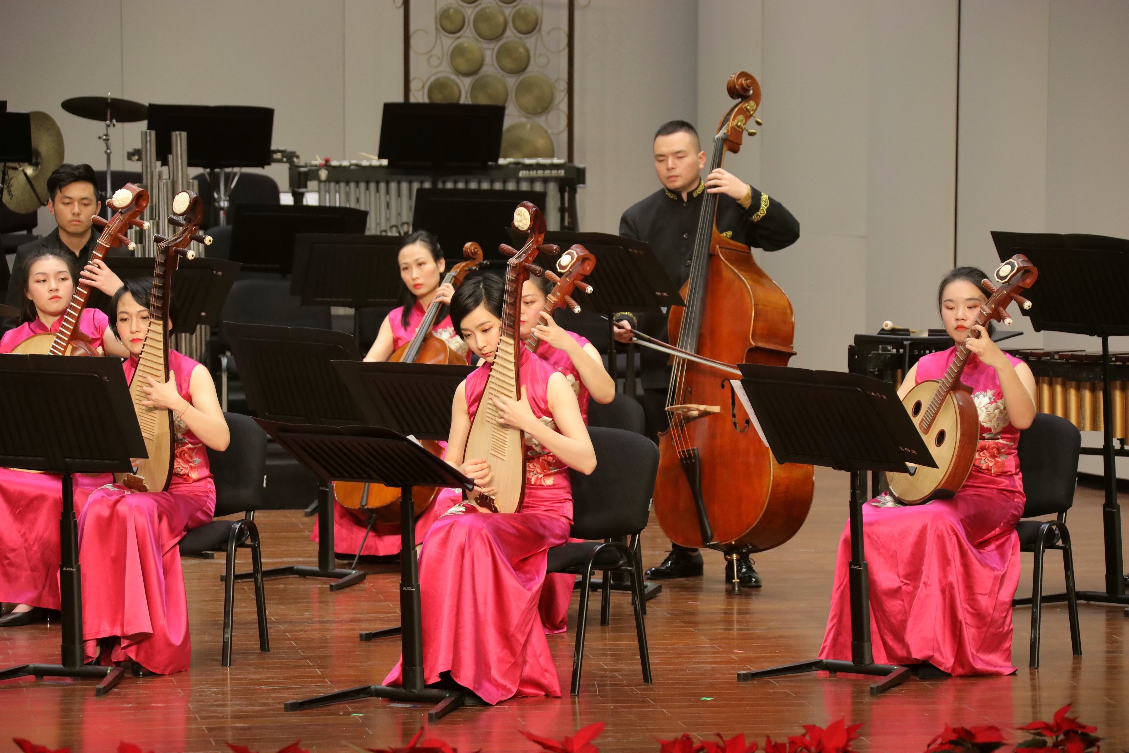 2019踏着欢歌声走来,由浙江省委宣传部、浙江省文化和旅游厅主办的2019浙江省属文艺院团新年演出季,1月8日晚在浙江音乐厅上演了2019新春民族管弦乐音乐会。音乐会由浙江艺术职业学院承办,国乐新觞,华音今咏,感染了现场观众。这是浙江艺术职业学院继10月张凌琵琶独奏音乐会、11月吴樟华竹笛独奏音乐会后,再一次在浙江音乐厅奏响国乐之音。