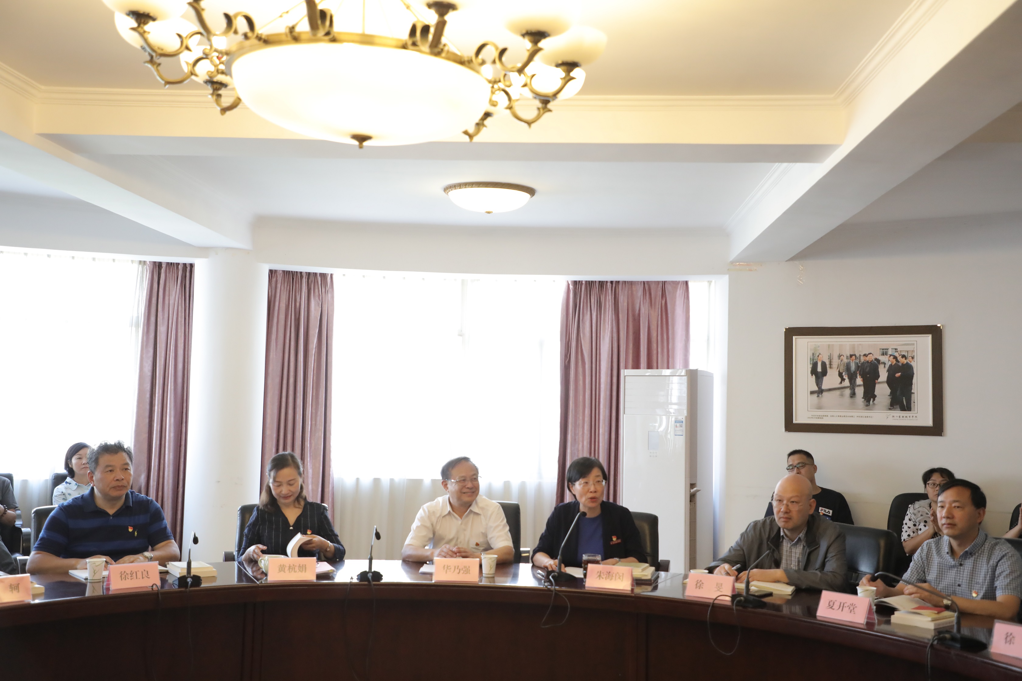 9月24日上午,浙江艺术职业学院召开“不忘初心、牢记使命”主题教育第二次专题学习暨党委理论中心组(扩大)学习会,就“全面从严治党”专题开展学习。省委第十四巡回指导组组长华乃强作指导讲话。党委书记朱海闵主持会议。党委副书记、院长黄杭娟领学《习近平关于“不忘初心、牢记使命”重要论述选编》相关篇章并作中心发言。巡回指导组组员徐红良、徐旻出席会议。校党委班子成员、处级以上干部参加会议。