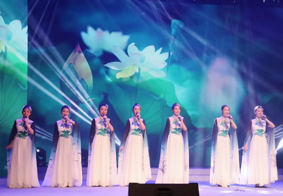 音乐系“锦上花”女团应邀在评选大会上表演了女声小组唱《洪湖岸边是我家》节目,赢得现场观众阵阵喝彩。