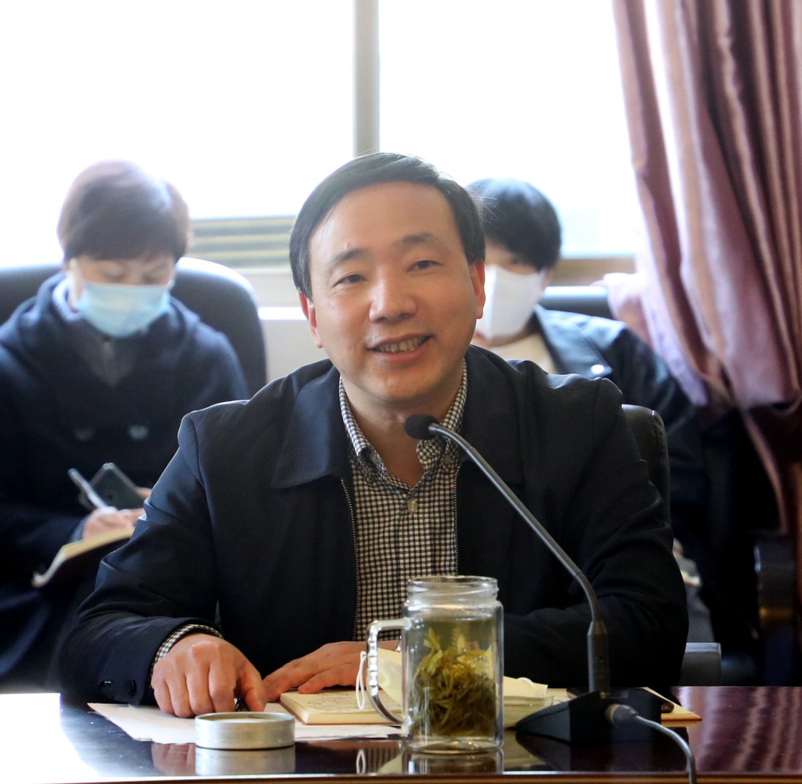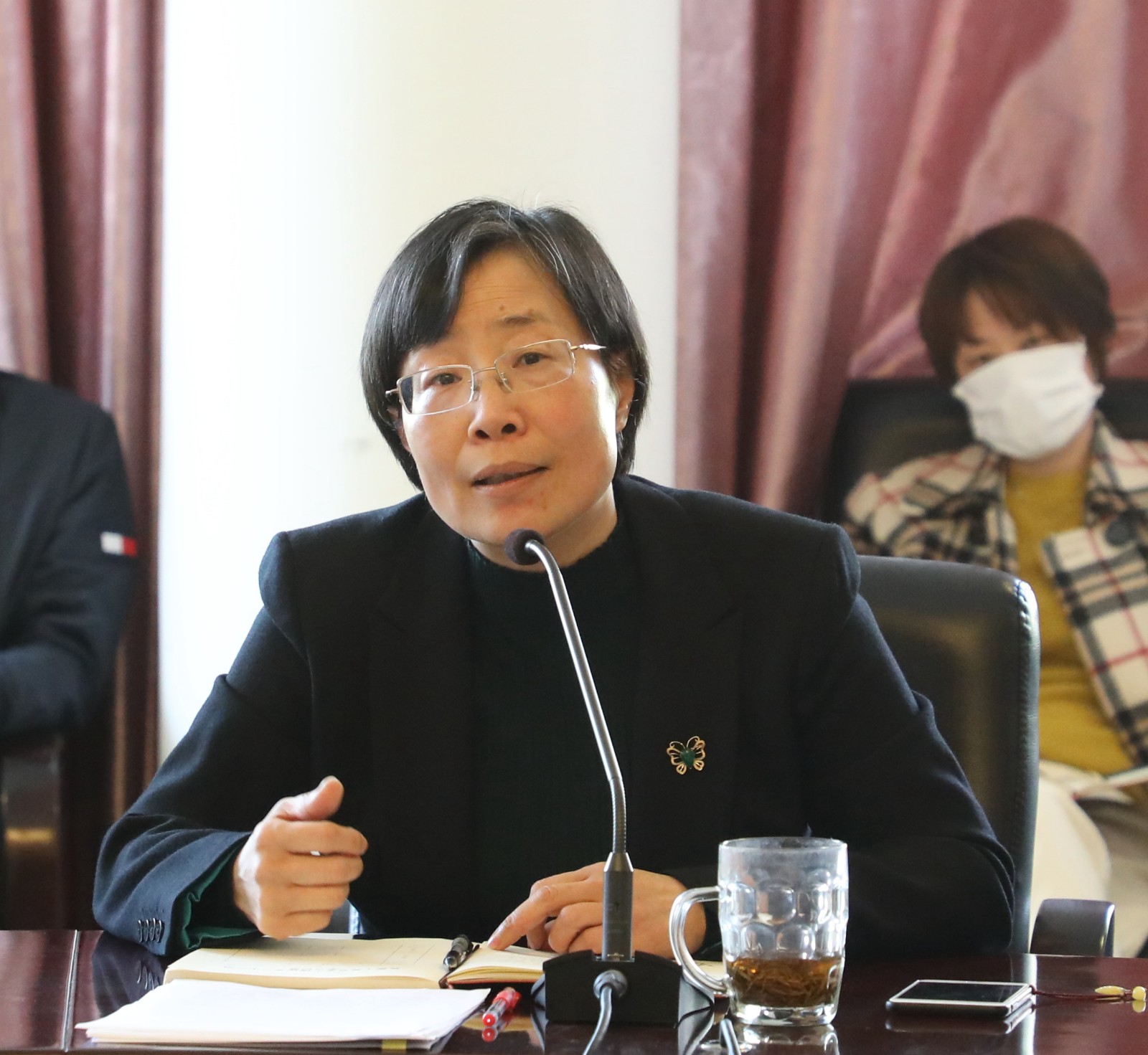 黄杭娟结合工作指出,学校疫情防控要强调再强调、坚持再坚持。开学复校要按照总书记要求准确把握国内外疫情防控的阶段性变化,因时因势调整工作着力点和应对举措,增强防控措施的针对性和实效。附中开学在即,疫情防控各工作组必须做好全面清单核验、全覆盖检查、应急预案情形的全过程推演和各就各位实战演练,校园防控的各项工作措施必须紧之又紧、实之又实、细之又细。学校发展要准确识变、科学应变、主动求变。按照总书记要求善于从眼前的危机、眼前的困难中捕捉和创造机遇。当前,我们要把学习贯彻总书记重要讲话精神与编制谋划好“十四五”规划、制定“双高”建设方案结合起来,深刻把握习近平总书记提出的新目标新定位,深入研究学校发展的新挑战新机遇,按照职业教育改革的精神,把目标定位、任务项目、具体措施、保障机制做好实施方案,努力编制出科学合理、鼓舞人心、落地可行的好规划、好方案,确保总书记的殷殷嘱托全面、彻底、有效地落实在浙艺的建设发展中,把学校在高教强省、文化浙江、诗画浙江建设中应有的作用充分突显出来。学校建设需要广大干部担当作为、不懈奋斗。当前我们正在开展干部选聘工作,广大干部要切实增强政治担当、历史担当、责任担当。勇于担当就必须有奋斗精神,敢于攻坚克难;勇于担当就必须有改革良谋,推动学校创新发展。我们将继续坚定不移推进党风廉政和清廉浙艺建设,不断推动全面从严治党向纵深发展,探索建立“不忘初心、牢记使命”制度,在作风建设中交出优异答卷。