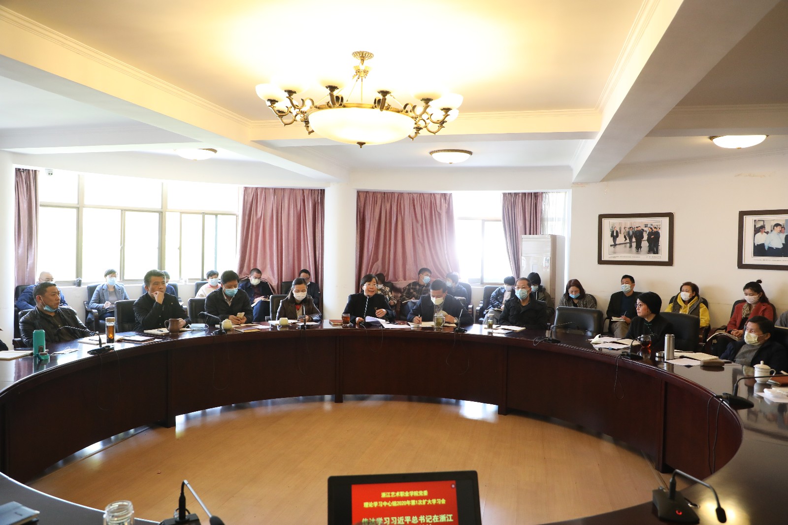 49日,浙江艺术职业学院党委理论学习中心组召开扩大学习会,专题学习习近平总书记在浙江考察时的重要讲话精神、省委常委会扩大会议精神以及省委理论学习中心组专题学习精神。校党委班子成员、副处以上干部参加学习。校党委书记朱海闵主持会议。