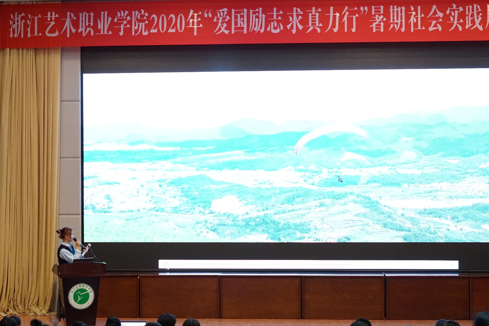 为深入学习贯彻习近平新时代中国特色社会主义思想,特别是习近平总书记关于青年工作的重要思想,引领我校广大青年学生了解国情民情,校党委学工部、校团委在今年7至9月组织开展了2020年暑期社会实践活动,为进一步扩大暑期实践育人成效,充分发挥实践育人在青年学生思想政治引领工作中的重要作用,9月27日,“爱国励志 求真力行”2020暑期社会实践风采大赛在图信中心报告厅举行,来自7个院(系)的9支队伍参加展示。校党委委员、宣传部部长马向东出席,张志扬、许瑛、谢志勇、顾才铭、王筱芽、金银琴等各系部党组织负责同志参加活动。