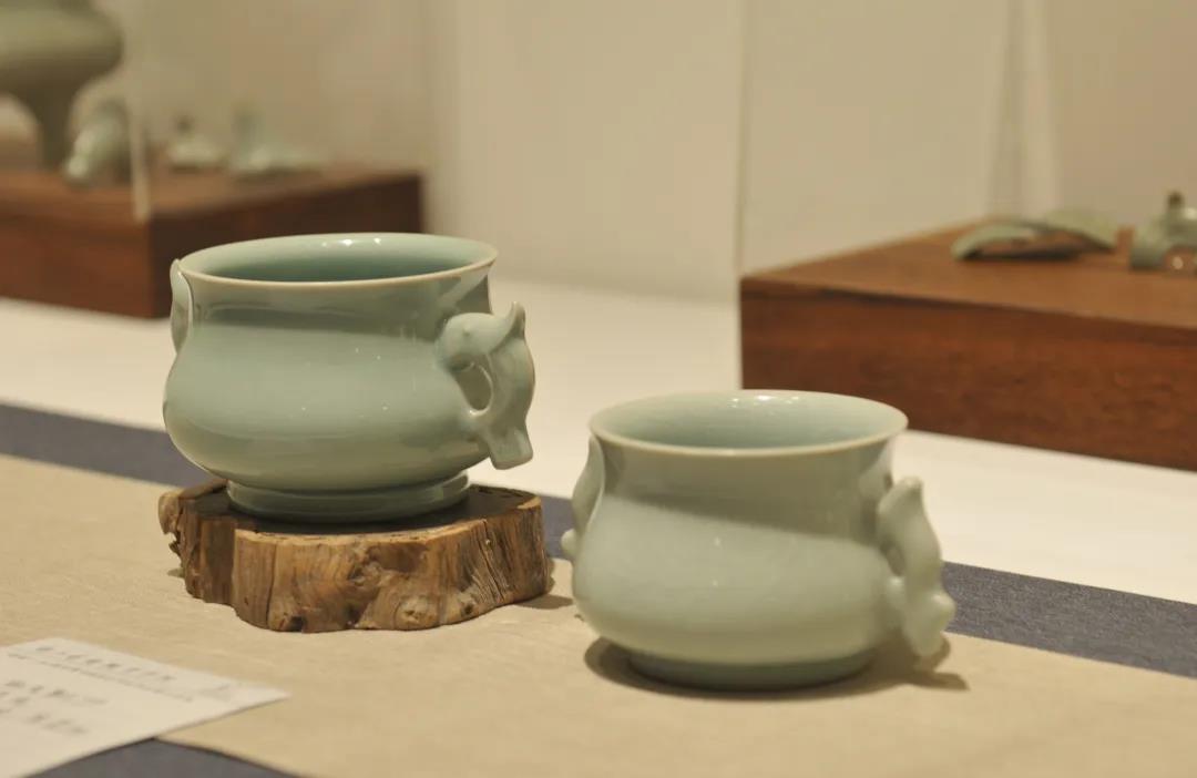 青瓷是中国陶瓷烧制工艺的珍品,早在商周时期便出现了原始青瓷,历经春秋战国时期的发展,到东汉有了重大突破。本次展出的不仅有传统技艺制作的杯碗碟系列,同学们还在传统的基础上加入了自己的创意,将戏曲、山海经等内容与青瓷完美结合,使人眼前一亮。