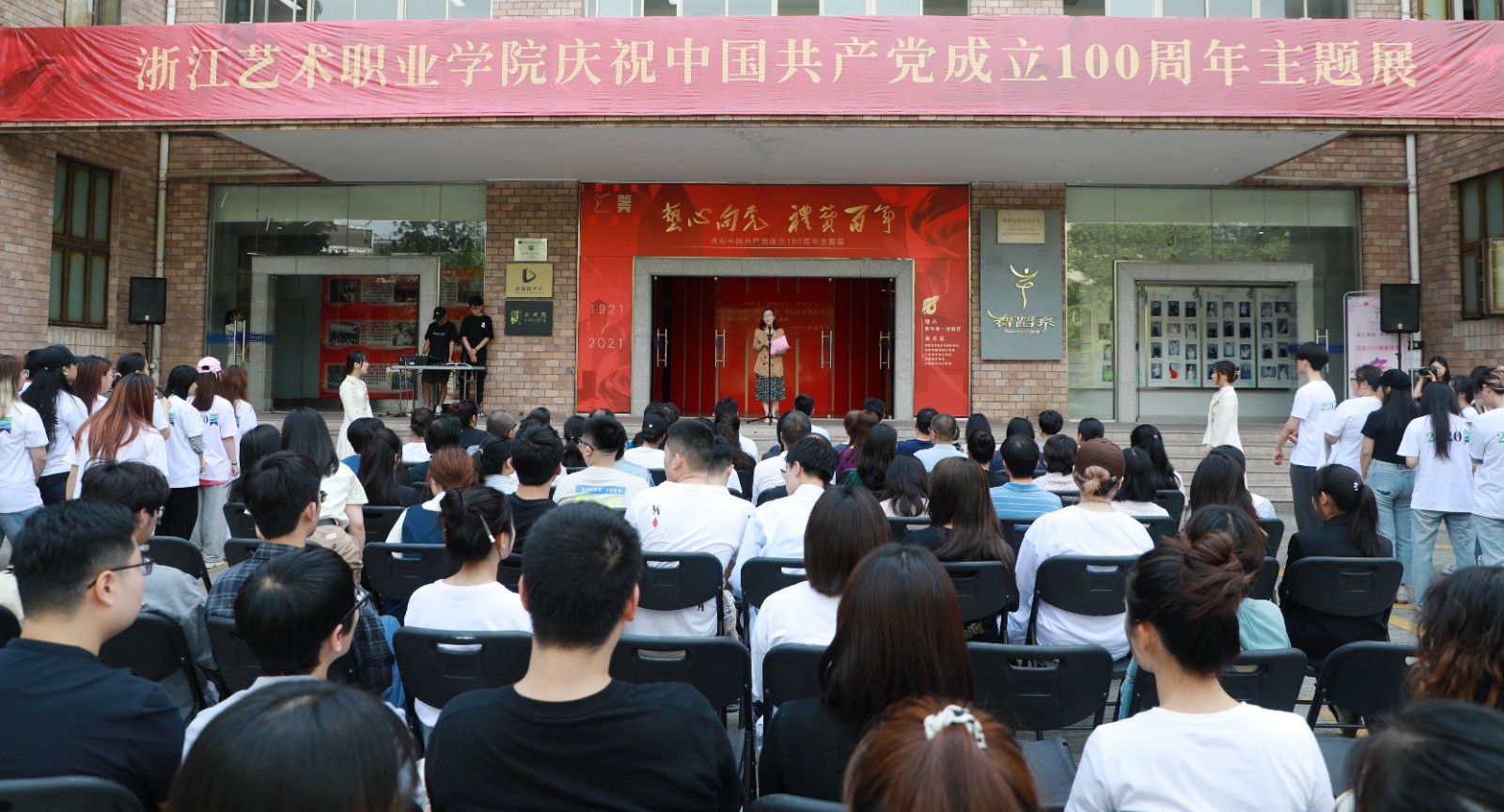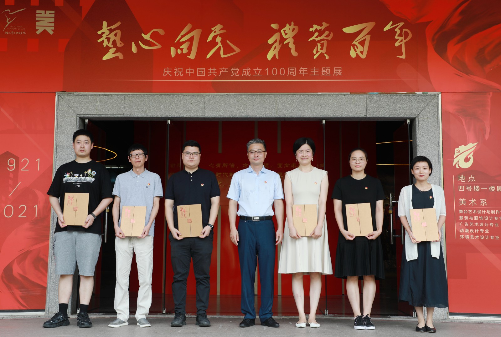 “百年征程波澜壮阔,百年初心历久弥坚”。浙江艺术职业学院《艺心向党 礼赞百年——庆祝中国共产党成立100周年主题展》,于6月25日在学校四号楼一楼展厅开幕。校党委书记薛亮,党委副书记、院长黄杭娟,党委委员、副院长沈军甫、支涛出席,各职能部门负责人、各院系书记和美术系师生代表参加。开幕式由党委委员、宣传部部长马向东主持。