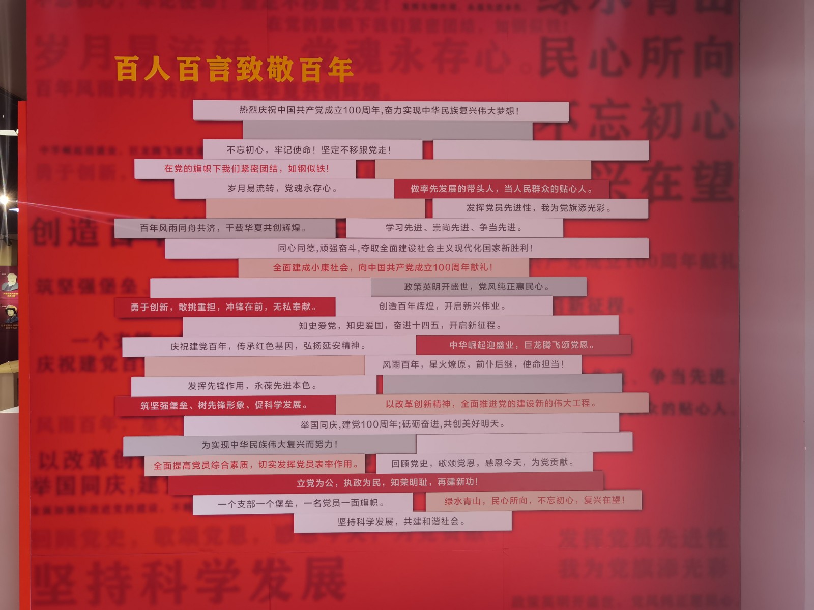 活动前期,学校开展百名师生党员“百人百言致敬百年”接力活动和书法作品致敬百年征集活动。美术系党总支下设的三个党支部和五个教研室结合专业特色,将党史学习教育融入专业教学,完成了前期的设计、创作、布展工作。