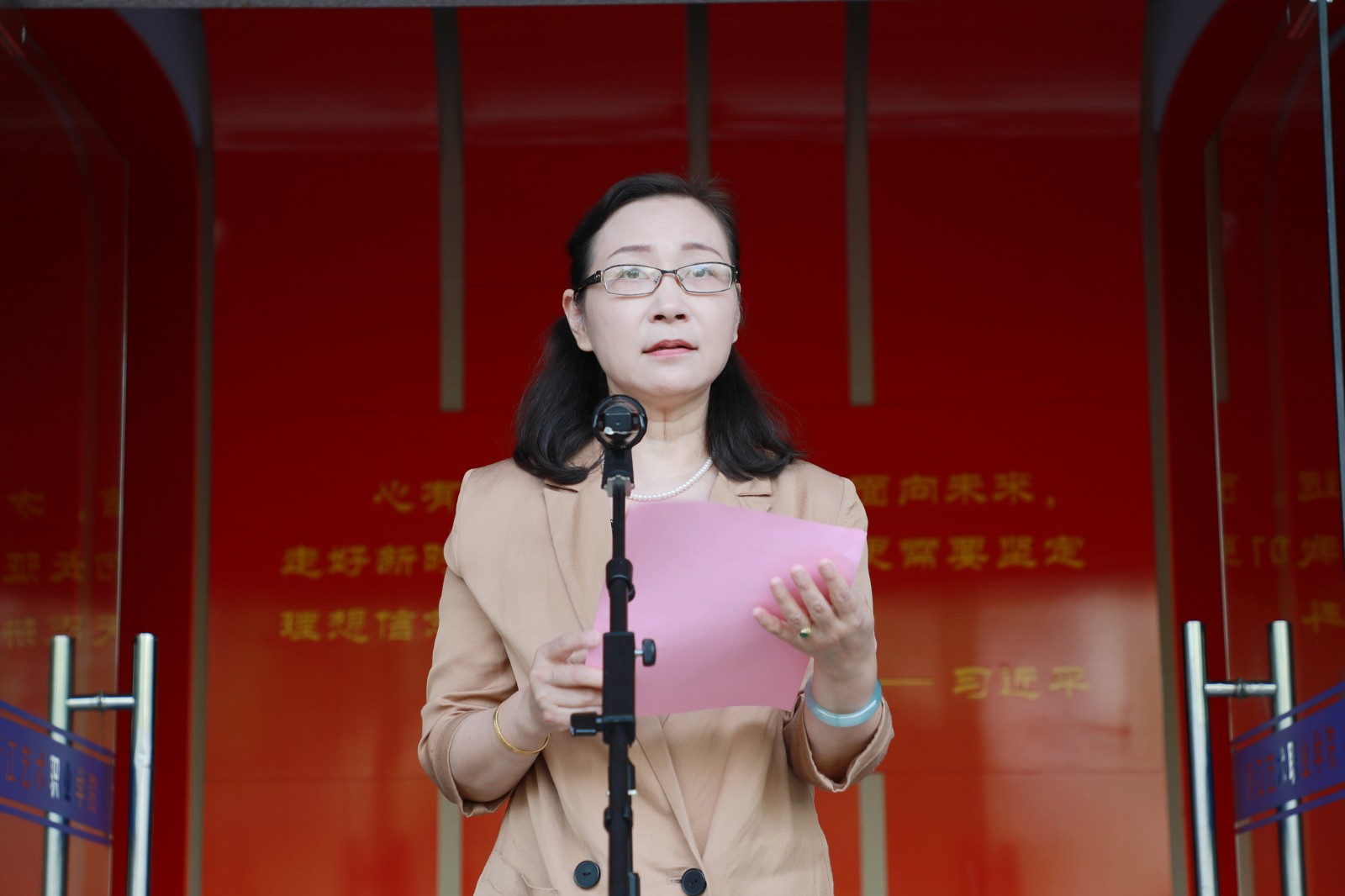 薛亮致辞。他表示,此次展览是浙江艺术职业学院坚定育人初心,赓续精神血脉,立足艺术特色,以美术作品的形式呈现百年党史的生动实践,是党史学习教育的有效载体。他希望通过打造美术作品与党史交织相融的互动型党史教育,将艺术教育、情感体验、理论阐释、价值引导融为一体,深化习近平新时代中国特色社会主义思想铸魂育人长效机制建设。希望老师们不忘教师初心,牢记育人使命,为推动学校“十四五”高质量发展,助力我省“重要窗口”建设和高质量发展建设共同富裕示范区贡献更多聪明才智。希望同学们志存高远、脚踏实地,努力在实现中华民族伟大复兴的中国梦中书写精彩人生。