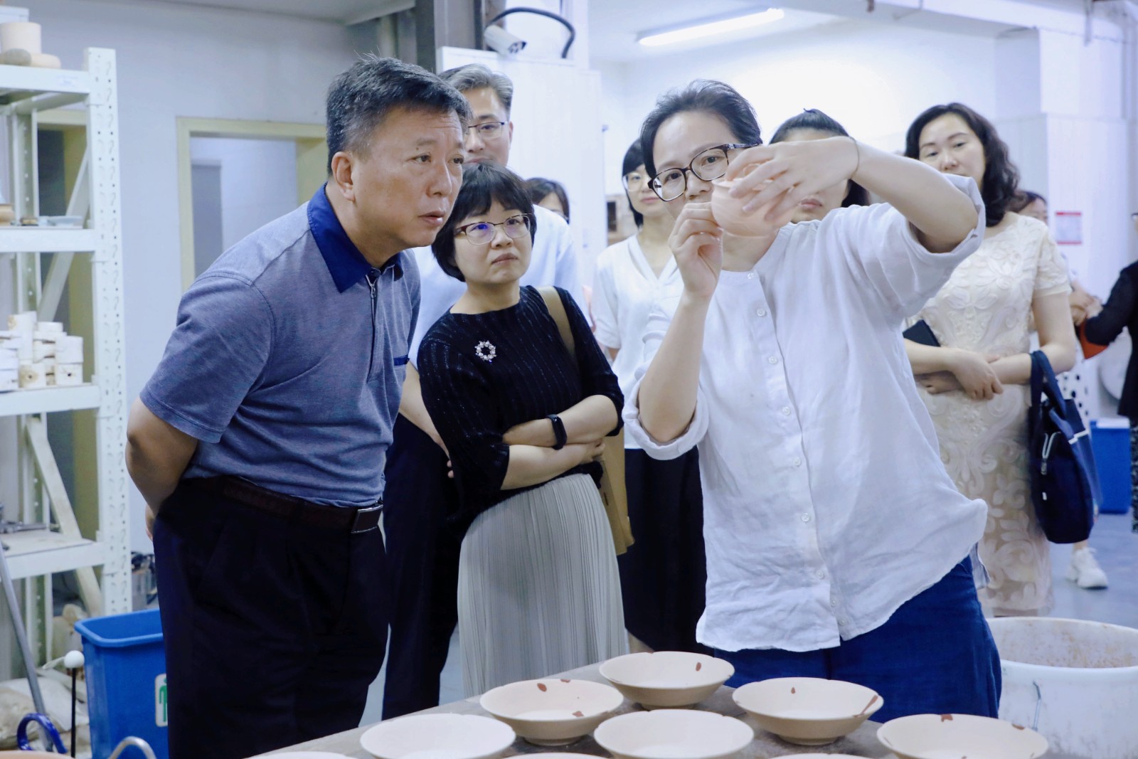 当天,陶诚一行走进浙艺课堂,观看浙江省高水平专业群舞蹈表演专业、国家“双高”专业群戏曲表演专业、戏剧表演(音乐剧表演3+4)中本一体化班等课堂教学情况,参观了青瓷烧造、文物修复、字画装裱、文物鉴定等全国非遗传承人群研修研习培训基地,在浙江实验艺术剧场观看了学校的教学汇报演出,并就有关教学及实践情况进行了交流。