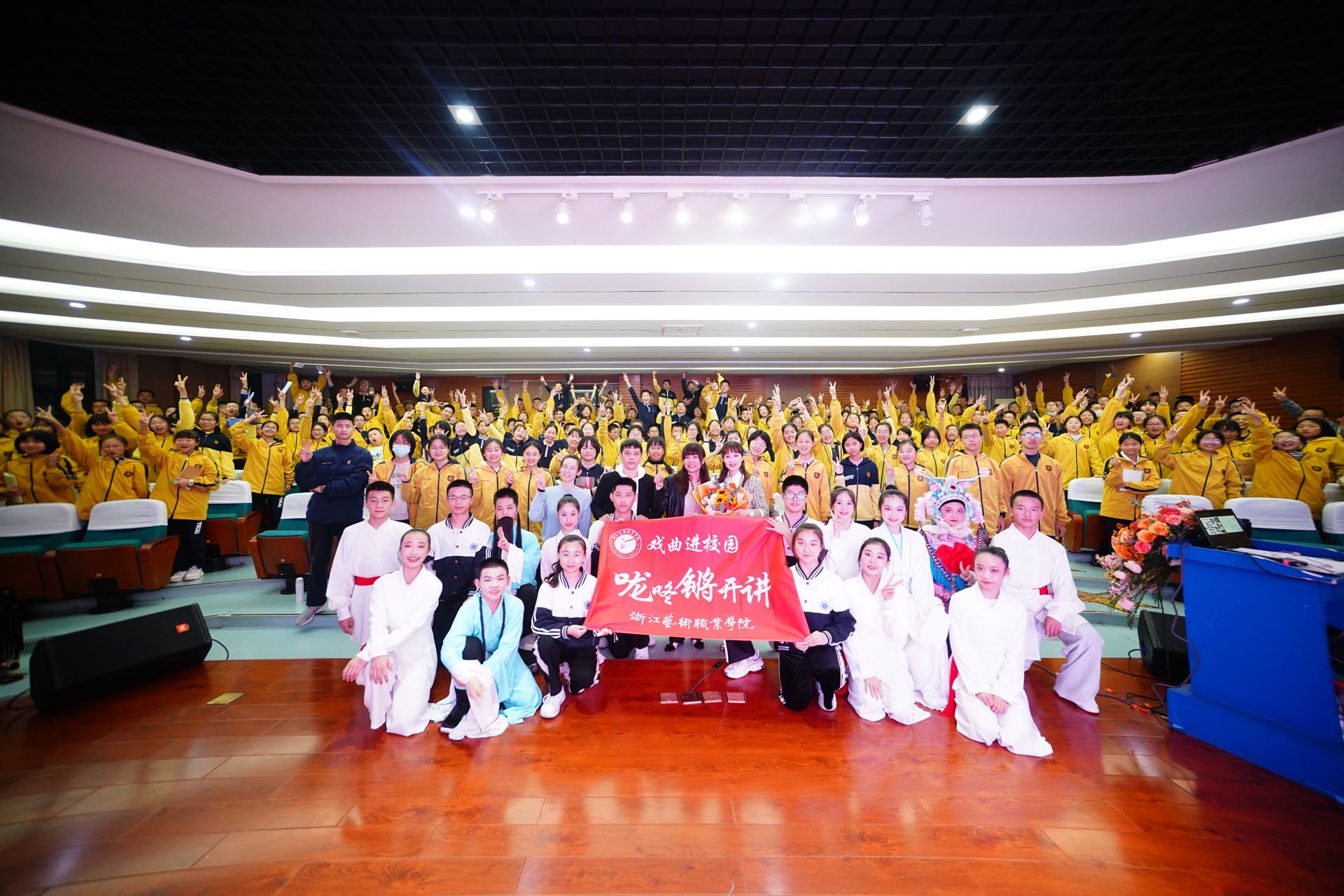 11月下旬,浙江艺术职业学院戏曲学院联合杭州锦绣育才教育集团、临平区文化馆、拱墅区戏剧家协会、临平区实验小学等单位,开展了8场“传统文化校园行 美育精神共传承”戏曲进校园系列活动,将戏曲带进锦绣中学、临平区实验小学、育才中学、京杭小学等中小学,以剧节目展演的形式引导学生体验传统文化,以沉浸式体验活动来传播戏曲知识,培养学生对优秀传统文化的兴趣,增强学生戏曲艺术素养和审美素养,进行戏曲美育教育。