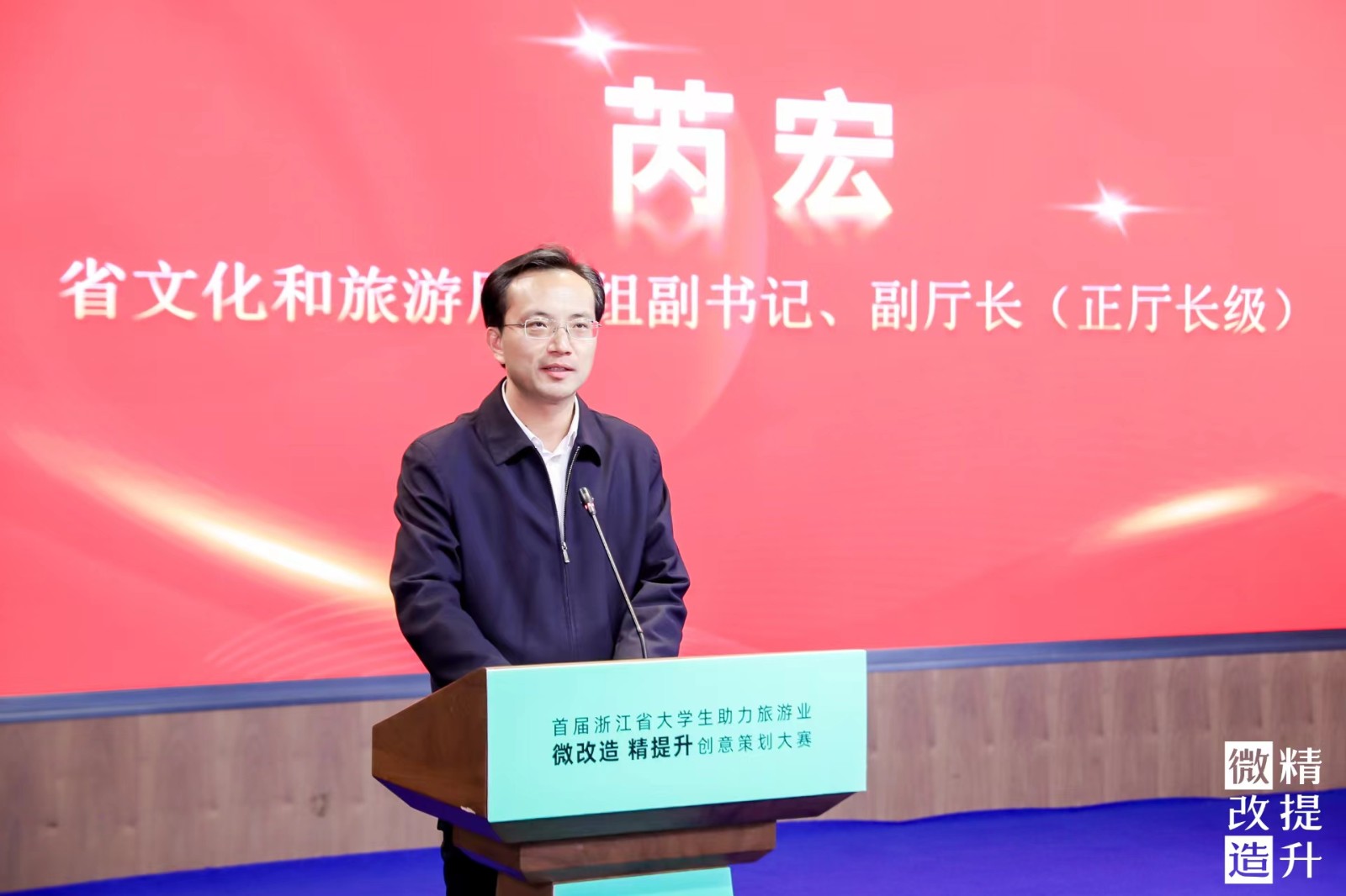 颁奖典礼上,芮宏代表赛事主办方对踊跃参加大赛的高校师生及积极筹备大赛的承办单位表示感谢。他指出,“微改造、精提升”是一项综合性工作,不仅需要政府主动发力,全社会共同努力,更需要广大青年朋友的集思广益。他表示,希望高校师生通过此次大赛的平台,在“微改精提”中发挥桥梁纽带作用,从游客的直接需求出发,提升旅游品质和游客体验感;发挥工匠精神,从细微之处入手雕琢精品;立足美好生活主客共享,加快设计成果转化和应用。用自己的青春创意、巧手巧思,推动旅游业高品质提升和高质量发展。