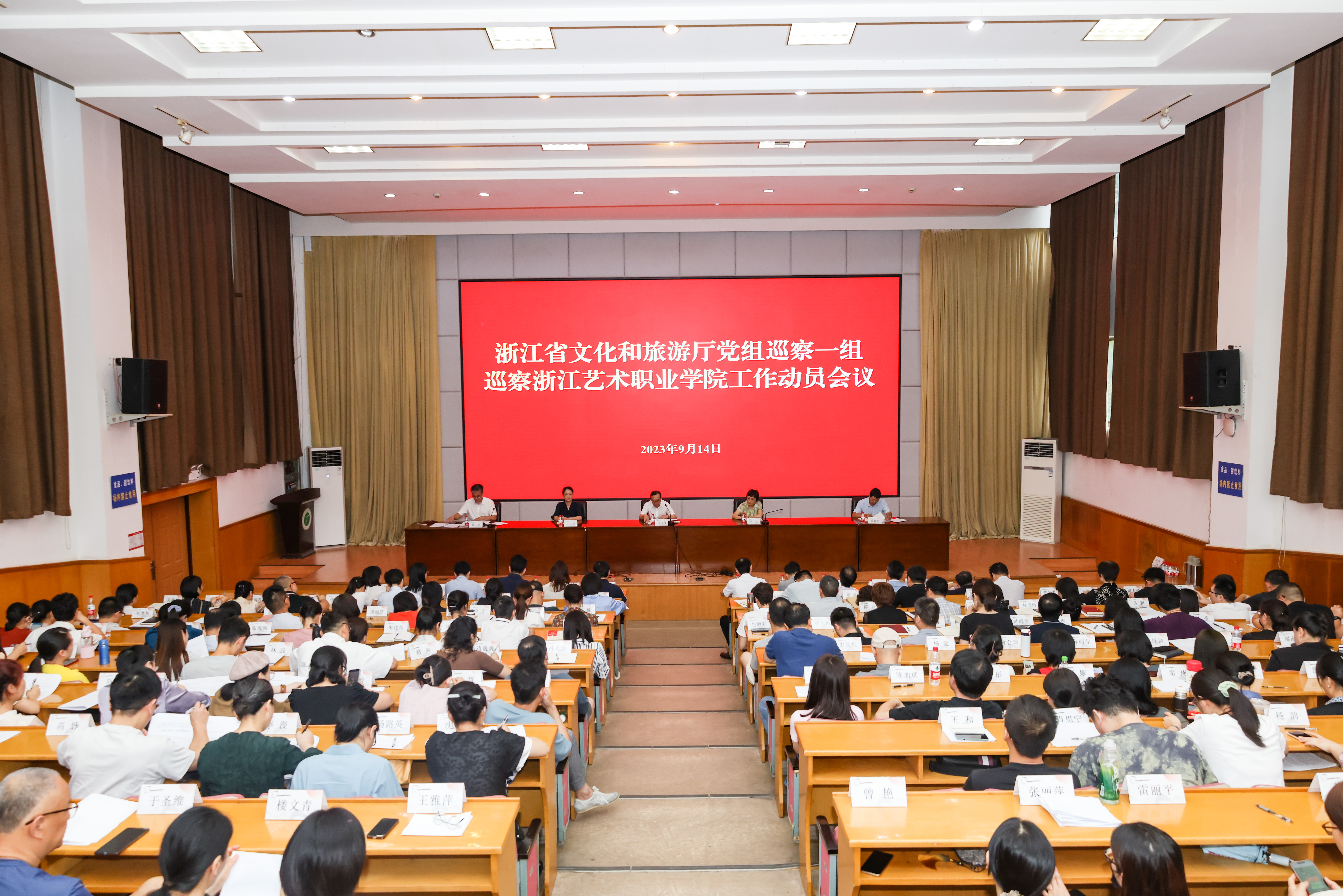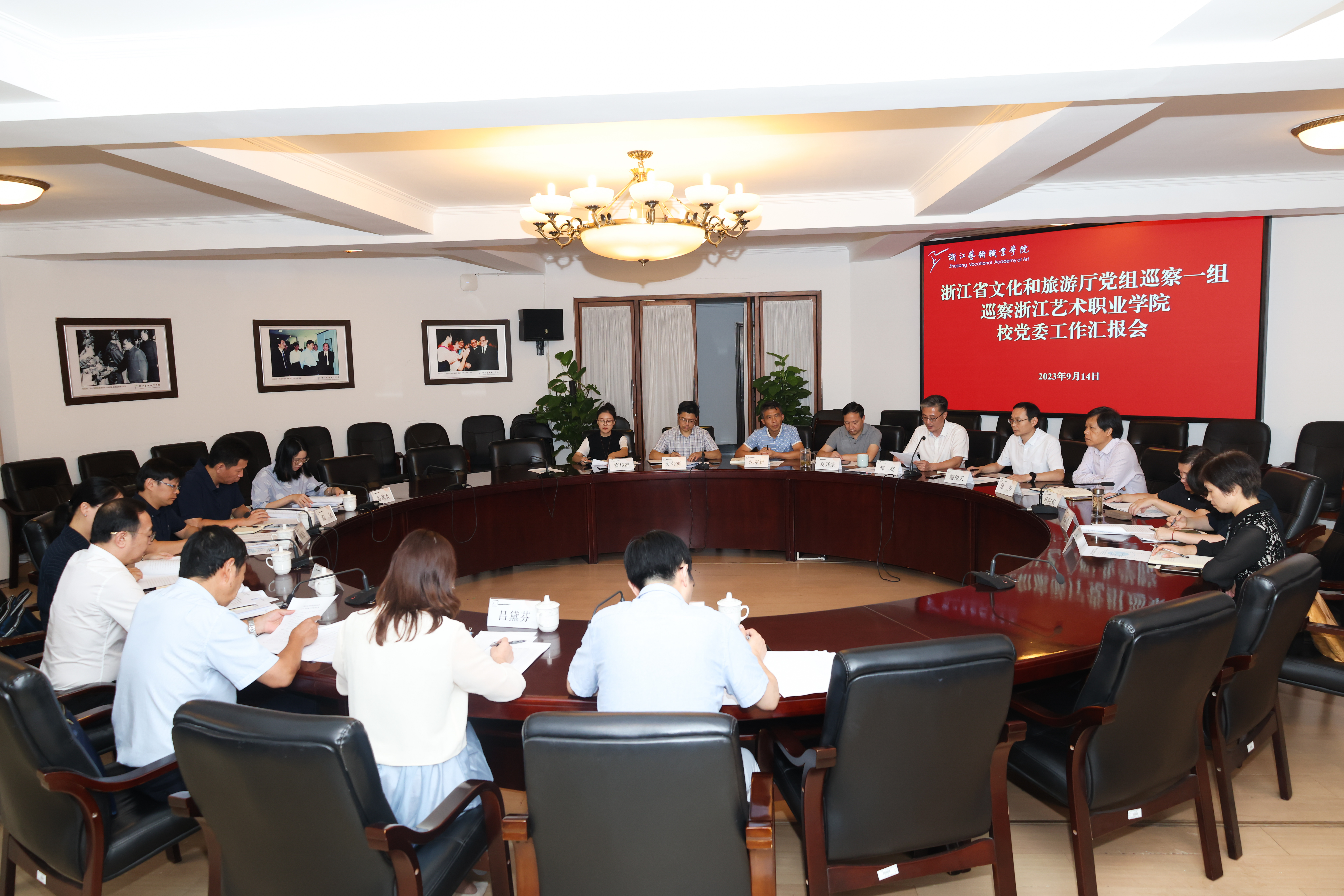 根据省委巡视工作统一部署,9月14日下午,省文化和旅游厅党组巡察浙江艺术职业学院工作动员会召开。会前,省文化和旅游厅党组第一巡察组组长刁玉泉主持召开与学校党委书记薛亮的见面沟通会,通报了有关工作安排。会上,刁玉泉作了动员讲话,对做好巡察工作提出要求。薛亮作表态发言。
