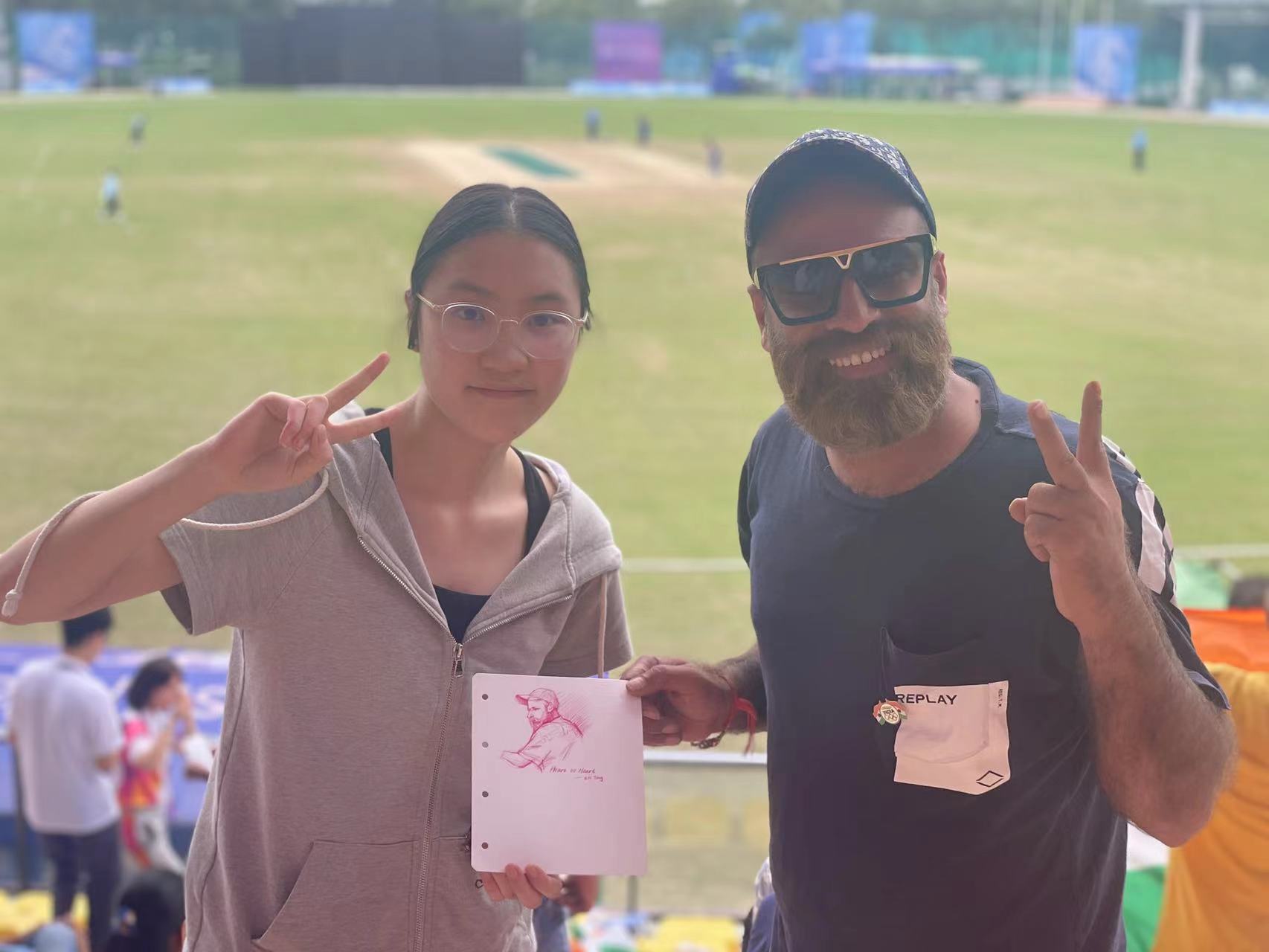 杭州第19届亚运会正火热进行中,各个国家之间的友谊和文化得到广泛交流。浙艺设计学院2022级中专绘画班学生童赵楠在亚运板球比赛期间展现了她独特的艺术才华,以绘画的方式向外国友人表达了中国人民对他们的热烈欢迎和友好情感。