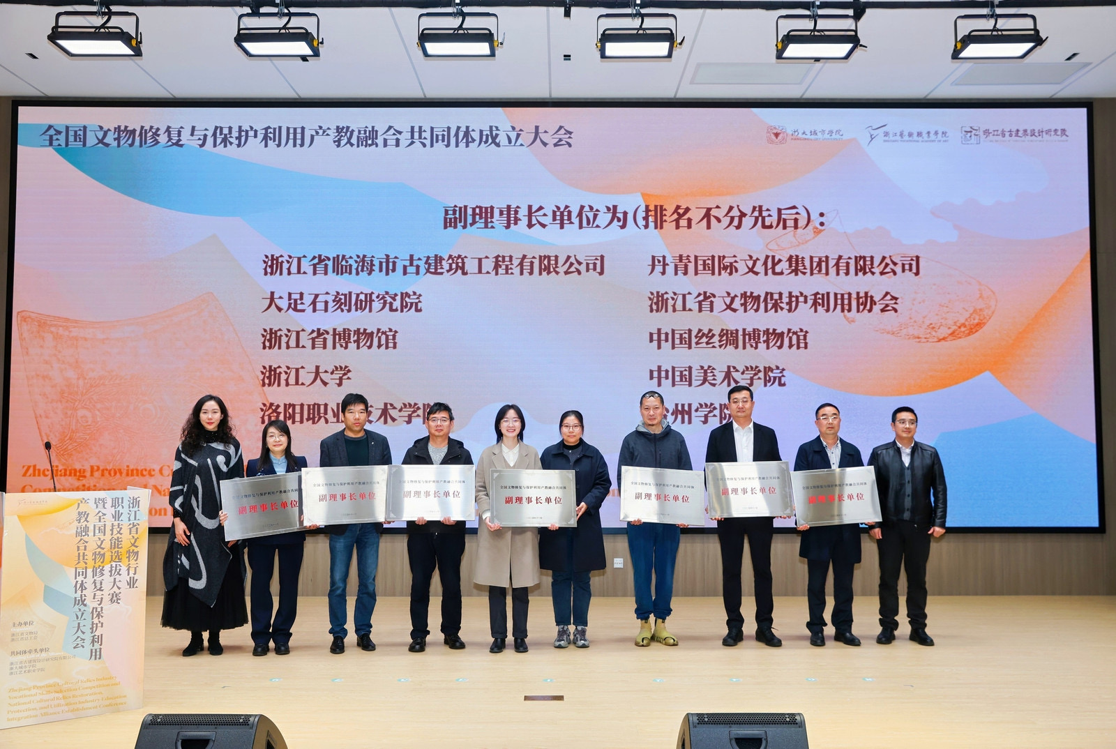 11月28日,由浙江省古建筑设计研究院有限公司、浙大城市学院和浙江艺术职业学院3家单位牵头,52家行业企业、院校、协会机构、学会组织参与建设的文物修复与保护利用产教融合共同体成立,成立大会在浙江艺术职业学院举行。