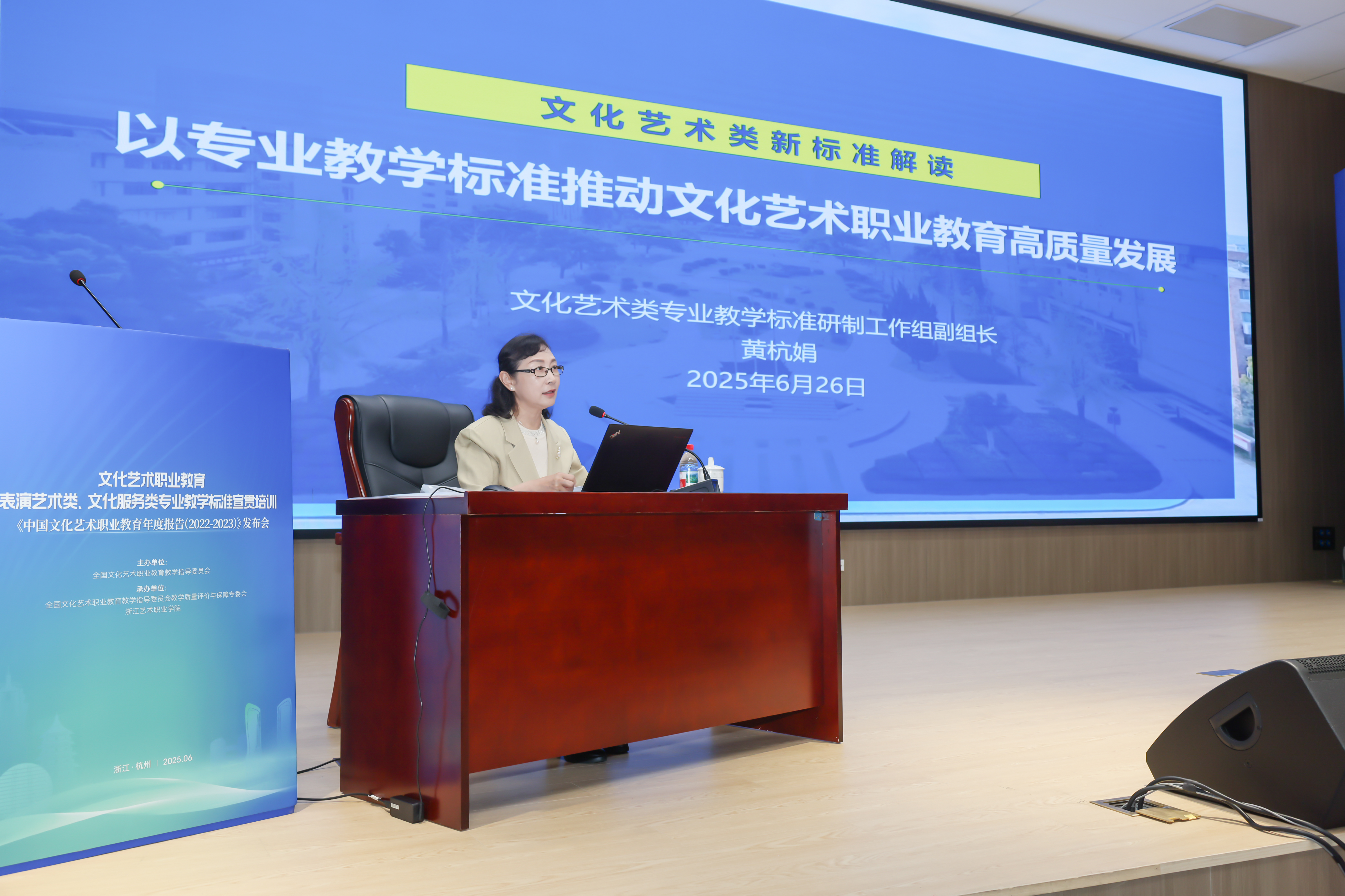 黄杭娟围绕文化艺术类专业教学标准研制的新变化、新特点作解读,提出通过深化产教融合、强化数字赋能、厚植文化根基、突出实践特色,提升文化艺术职业教育办学质量。