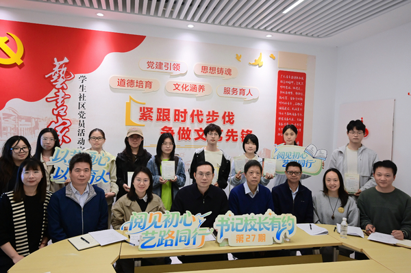 活动内容:校领导与学生代表共读艺术理论、美学哲思与艺术家传记等作品,结合专业实践畅谈阅读如何照见创作之路,在对话中碰撞灵感,在书香中涵养人文。