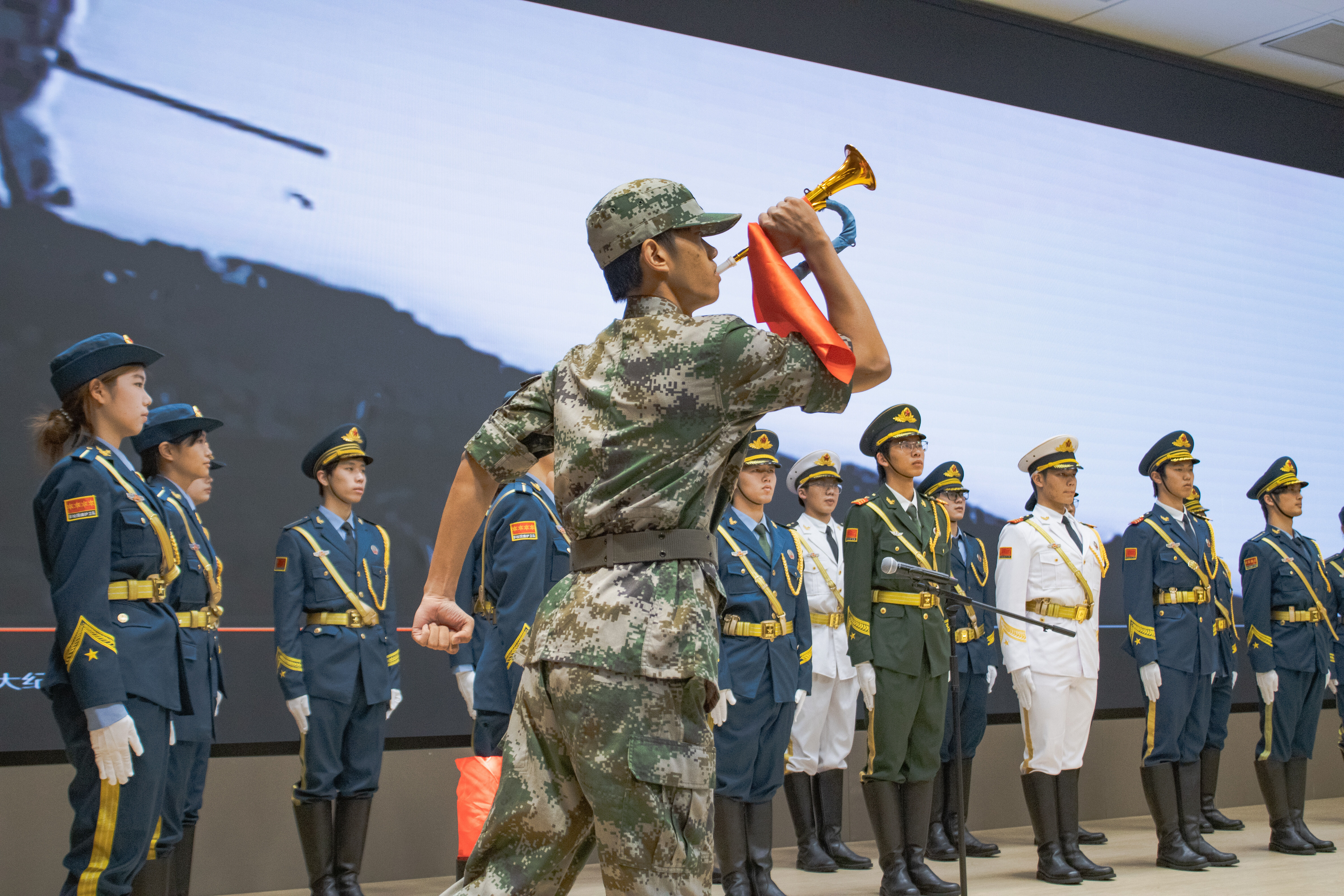 <p style="text-indent: 2em;"><span style="font-family: 宋体;"> 活动在国旗护卫队队员整齐的制服与挺拔的身姿中拉开序幕。他们以一曲《淬火成钢》唱响青春,激昂的旋律与坚定的神情感染了全场。《三大纪律八项注意》的经典旋律响起,熟悉的歌词复刻着革命先辈的铿锵誓言,让在场观众们在旋律中感受到人民军队的优良传统与纪律作风。</span></p>