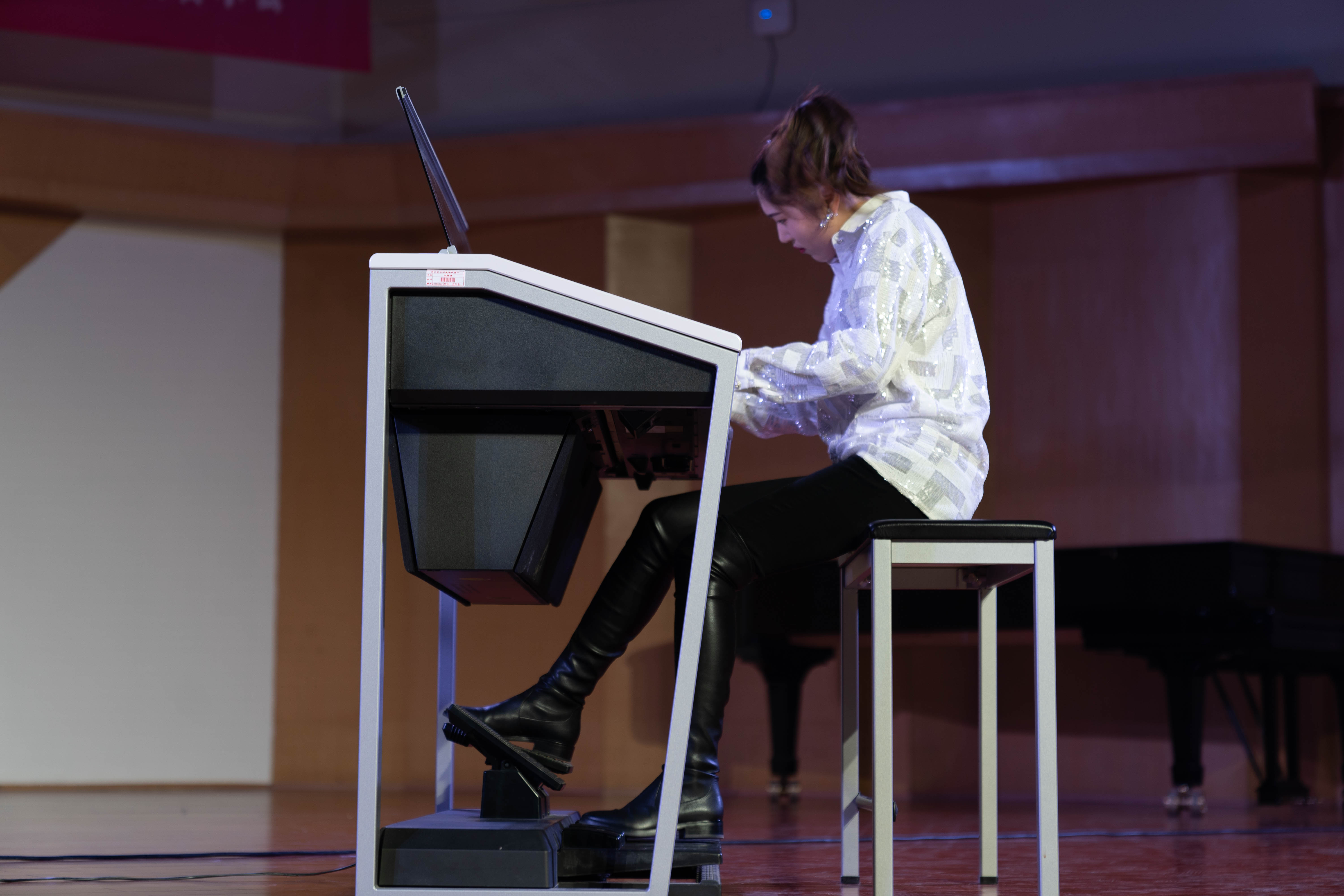 本场音乐会一共有13支乐曲,序是由张安琪与胡智汇带来的《哈利波特与魔法石》,时而舒缓时而激昂的旋律颇有魔幻世界的感觉。吴晗的《前奏曲》选自《英国组曲NO.2》,富有浪漫与华丽的气息。江子雄的《练习曲——革命》,旋律激昂悲愤,像是一种呐喊与抗争。毛涵昕带来的《四季—十二月》散发着浓郁的俄罗斯味道。在本场音乐会中,还有一位年纪较小的演奏者,她是来自18级小音乐班的许叶丹,一袭黑色长裙,优雅美丽,她在台上弹奏了一曲《皮黄》。她告诉记者:“学长学姐们今晚的演出很棒,他们都是我成长路上的一个榜样,我将努力向他们学习。”王宣赞带来了舒伯特的《即兴曲》,飞快跳跃的琴键在手指的弹动下送来轻快的旋律。夏冉带来了拉赫玛尼诺夫的《悲歌》,低沉的琴音伴着缓慢的节奏倾诉悲情。江子杰演奏的《奏鸣曲——悲怆》(第一乐章),这是贝多芬早期钢琴奏鸣曲的顶峰之作,这曲子的激昂刚毅被演奏得淋漓尽致。姚大卫的《山丹丹开花红艳艳》,熟悉的旋律使在场的听众忍不住小声哼唱。本场音乐会还有一对双胞胎兄弟(江子雄、江子杰),他们默契配合,带来了合奏《胆小鬼》(第三乐章),令台下掌声雷动。