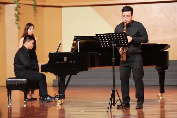 2018年6月13日晚,浙江艺术职业学院音乐厅上演了一场精彩的萨克斯风专场音乐会。本场音乐会由浙江艺术职业学院音乐系主办,现代流行音乐教研室协办。系领导郭义江、潘骅,浙江省流行音乐协会主席周斌,浙江省萨克斯专业委员会会长王震,浙江音乐学院青年教师娄洋出席了本次音乐会。