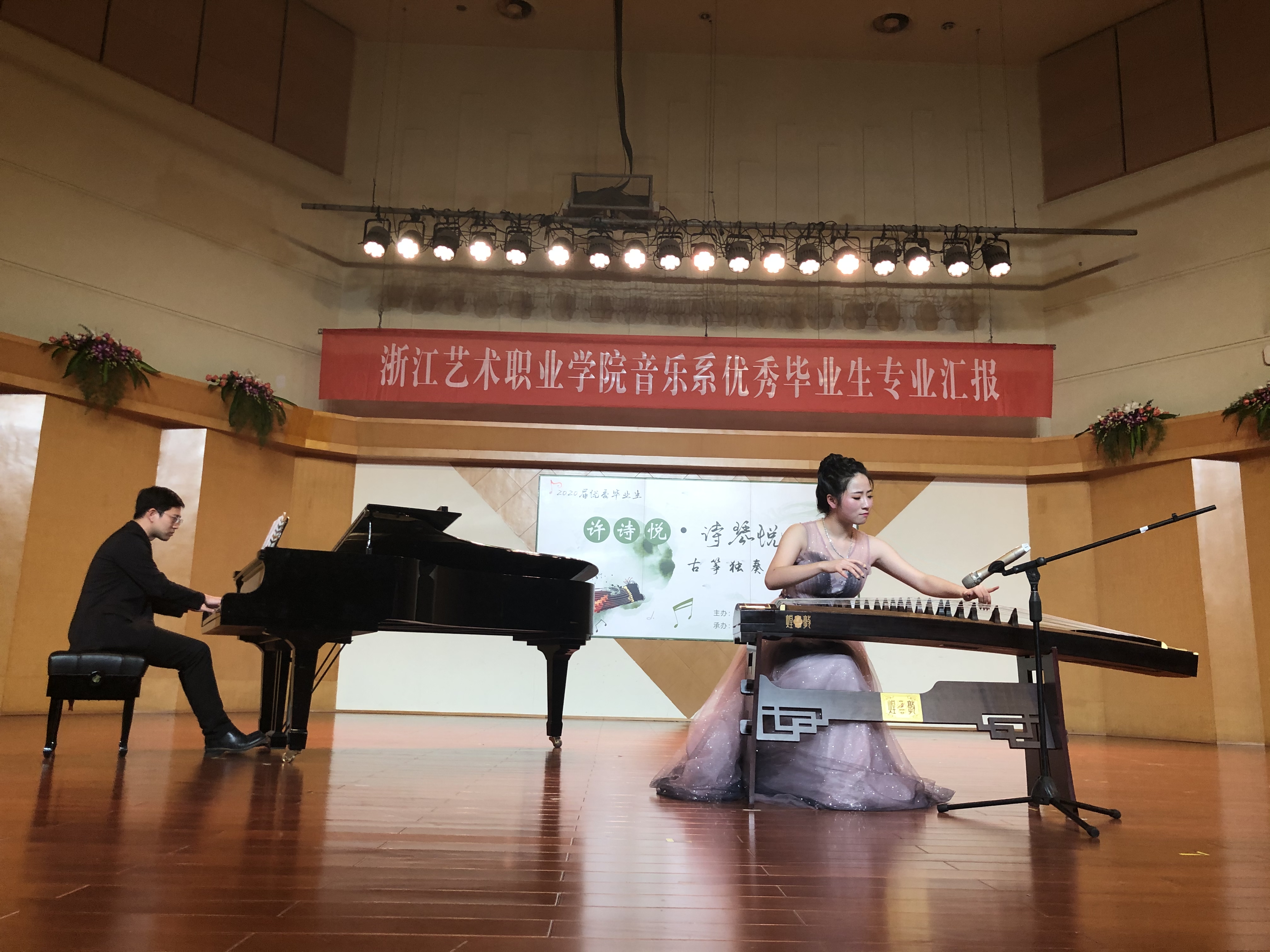 本场演出的主角为15民乐一贯班许诗悦同学,曾荣获国际华人艺术节浙江赛区艺术院校组荣誉金奖、新加坡国际古筝艺术交流大会展演大赛古筝独奏金奖、第三届“敦煌杯”中国古筝艺术菁英展演活动职业少年组演奏奖等多个国内外奖项,为2020届音乐系毕业生中的优秀代表。