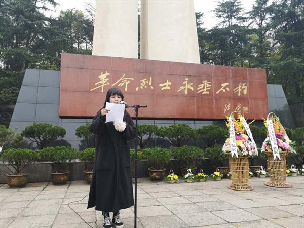教师代表汪奕楠宣读悼词。她说,虽然不能一一讲出先烈们的姓名,但他们一定是最可亲可敬的人,是父母心中最爱的人,是我们敬重与爱戴的。人民不会忘记,我们不会忘记,国家不会忘记,历史不会忘记,先烈永垂不朽!