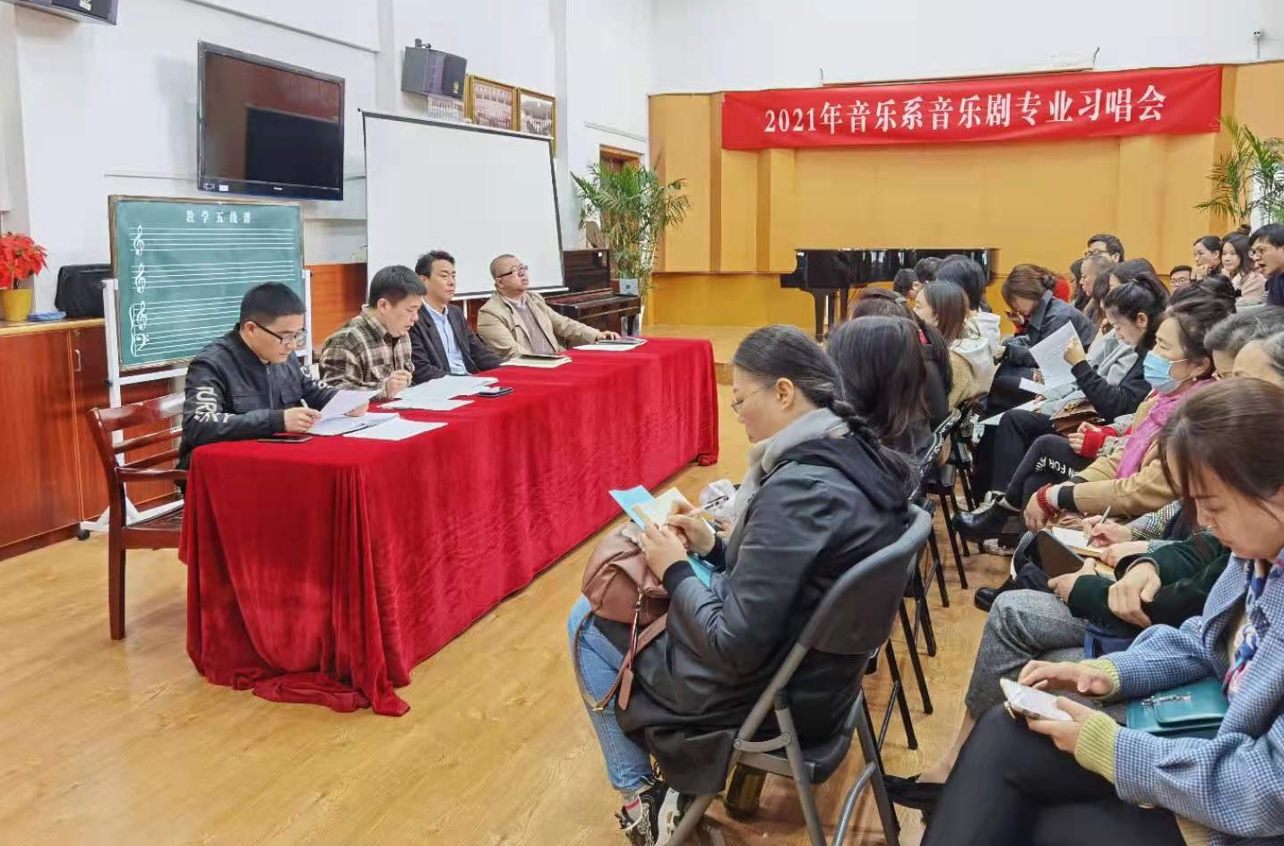 为了进一步夯实党史学习教育的成效,教育引导全体教职工学党史、悟思想、办实事、开新局,做到学史明理、学史增信、学史崇德、学史力行,4月8日,音乐系在系合唱教室开展教职工政治理论学习。