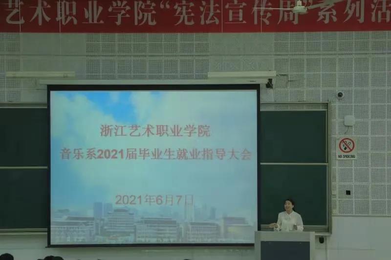 根据系部就业工作总体部署,为进一步提升毕业生的职业能力和就业竞争力,音乐系6月7日在阶梯二教室开展了就业指导讲座,为毕业生提供就业服务,动员2021届毕业生积极就业。音乐系党总支常务专职副书记谢志勇、专职副书记刘梦伟与全体辅导员、毕业生班主任出席,全体2021届毕业生参加大会。