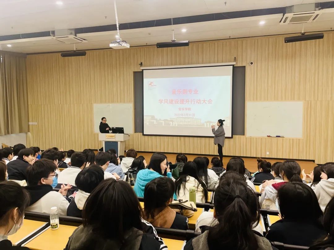音乐剧教研室在音乐学院学生工作部署下,召开音乐剧专业学风提升专项行动,分析音乐剧专业日常教育管理的基本情况,要求学生自觉遵守校纪校规,如按时出勤,上课认真听讲,课下认真练习,积极主动参加学校活动,德智体美劳全面发展。加强公寓阵地管理,做到快、齐、静,保持好寝室卫生干净整洁等。