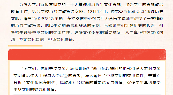 赓续历史文脉,谱写当代华章!校党委书记薛亮为音乐学院师生讲授形势与政策课