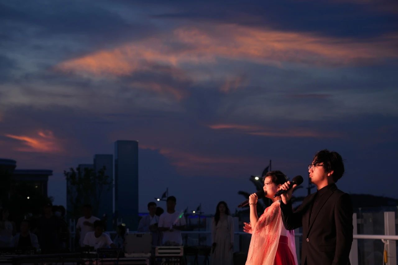 7月12日晚,暑期实践团承担的“文艺赋美润嵊泗”文艺演出在嵊泗县十里金滩特色小镇会客厅圆满举行。 晚7时许,十里金滩特色小镇会客厅广场人潮济济,观众们翘首以盼。琵琶独奏《唱支山歌给党听》展现对党的崇敬与热爱,器乐合奏《青城山下白素贞》带领观众来到了古风古韵的世界,精彩节目一一上演,观众席时不时发出喝彩声与掌声,演出结束后,现场观众报以热烈的掌声,迟迟不肯离场。