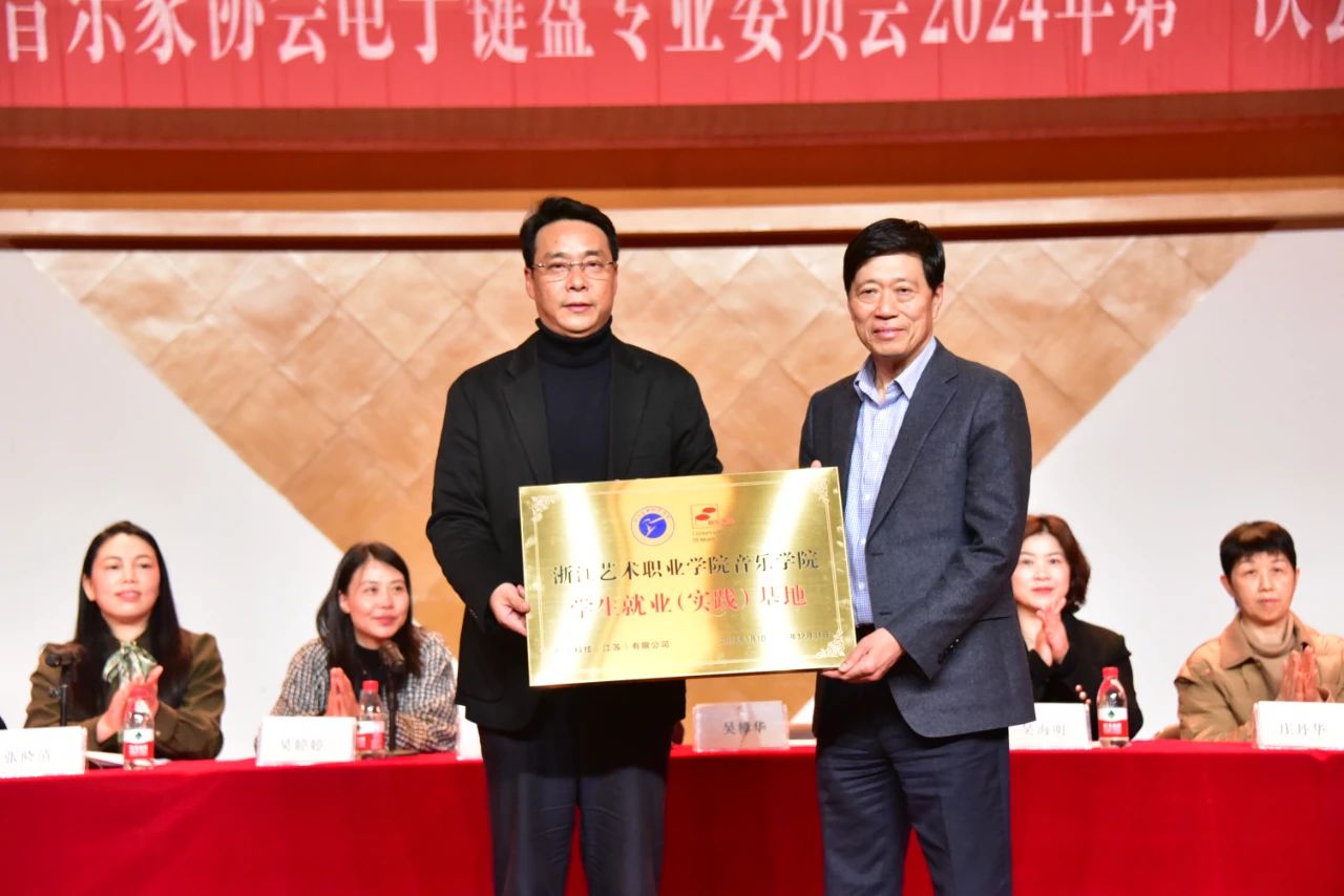 浙江艺术职业学院以推进学院深化校企合作、产教融合项目的开展,扩大学生社会实践和就业渠道,促进文旅有机融合为根本目的,积极开展企业合作单位的筛选,在本次会议上,通过浙江省音协电子键盘专业委员会的推荐,吟飞科技(江苏)有限公司和上海晓音文化传播有限公司与音乐学院建立合作关系,同时吴樟华院长为两家企业颁发合作单位匾牌。