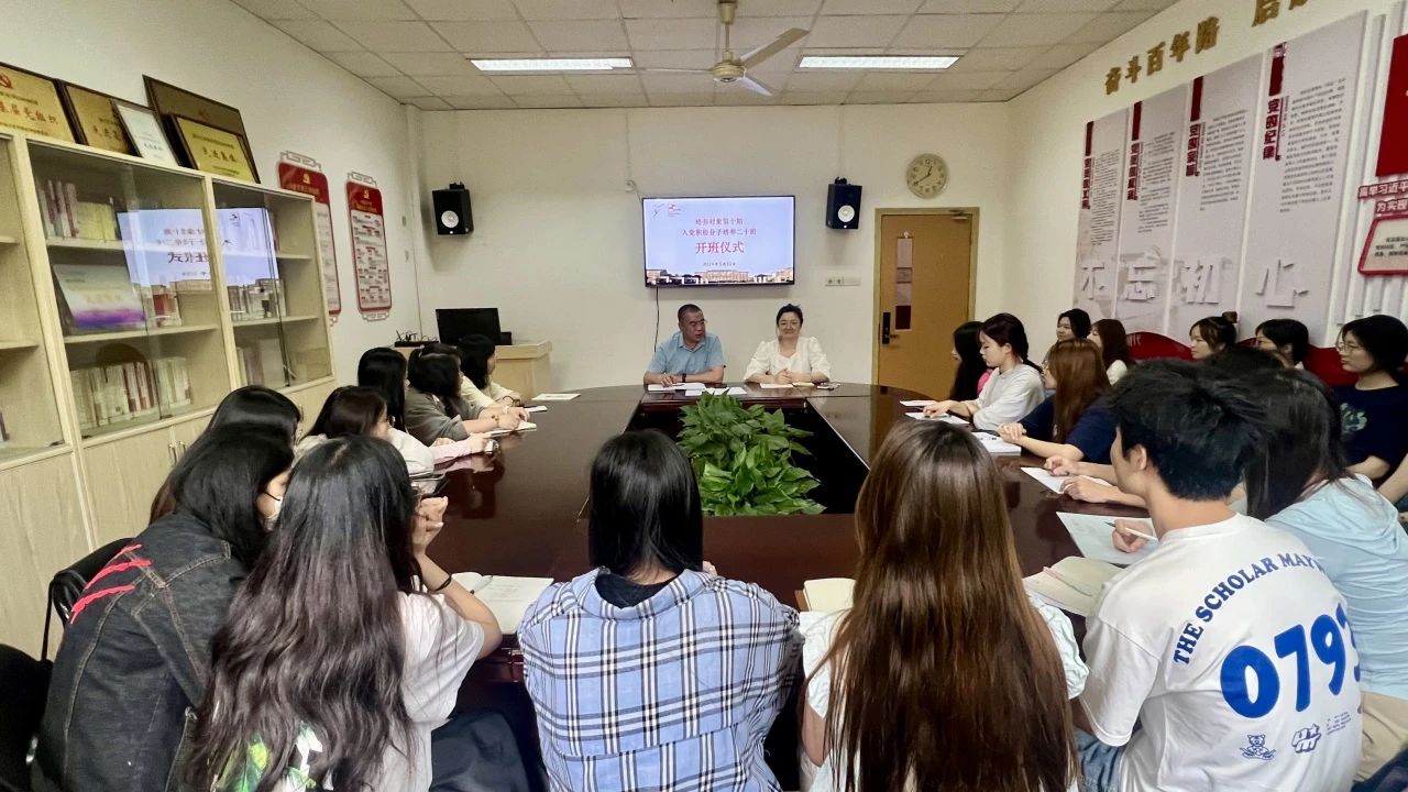 5 月 10 日中午,音乐学院党总支分党校在 3101 党员之家举行培养对象第十期和入党积极分子培养班二十班开班仪式。音乐学院党总支书记陈毅、组织员吴梦静和30余名发展对象和入党积极分子共同参加。